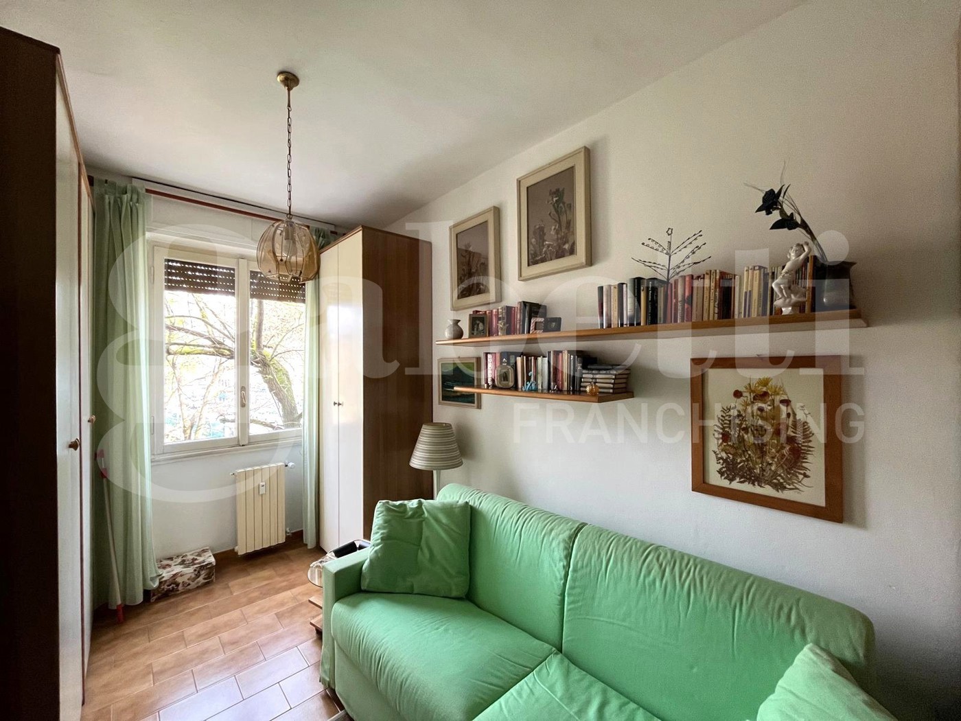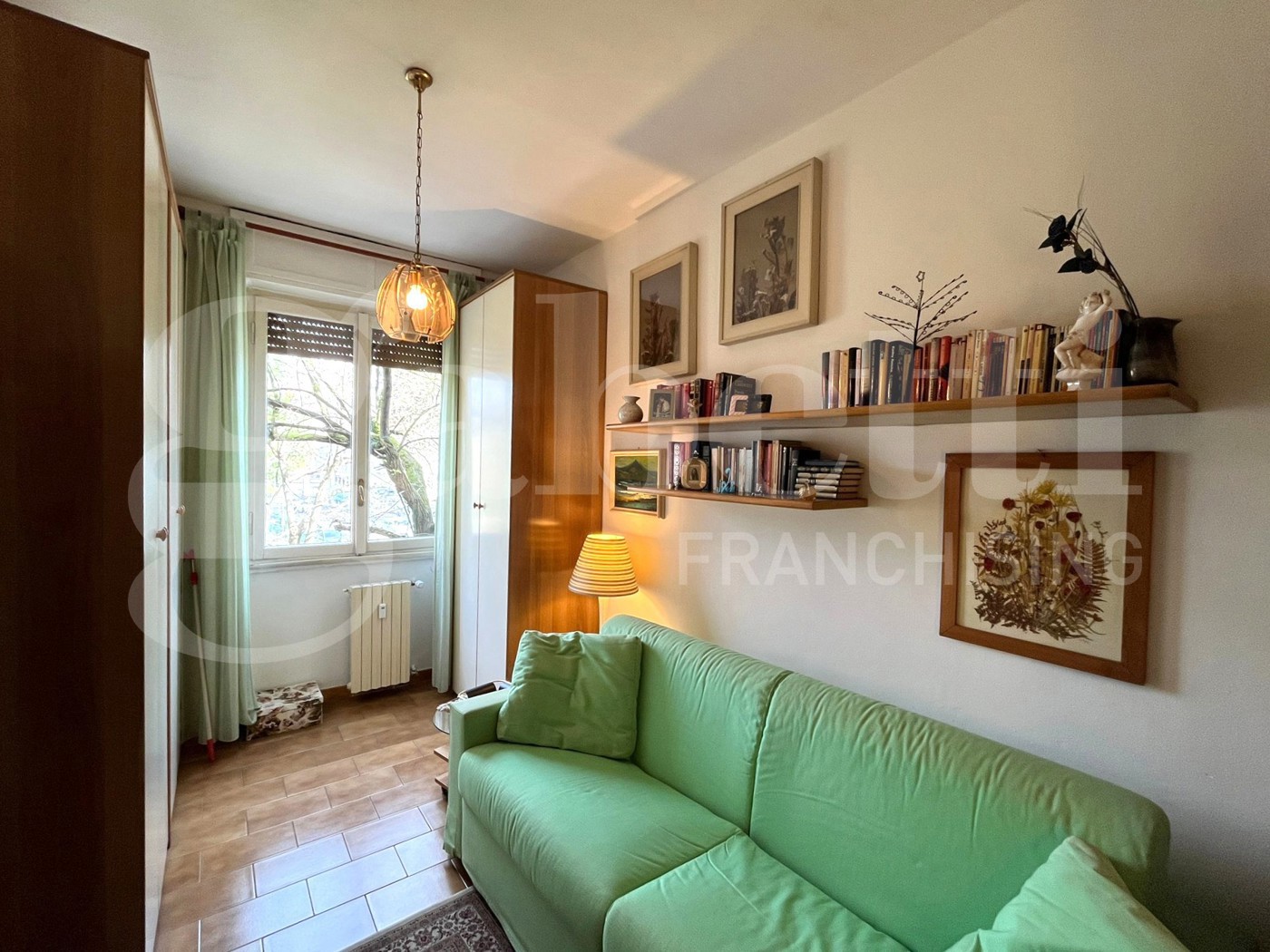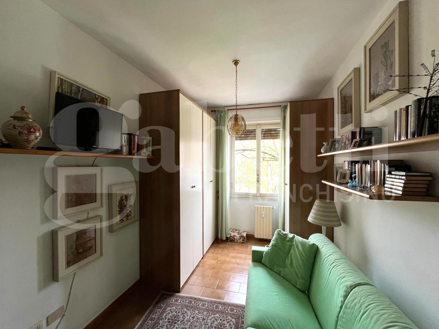 L'appartamento gode di una singola esposizione a est e affaccia sulladiacente parchetto.
