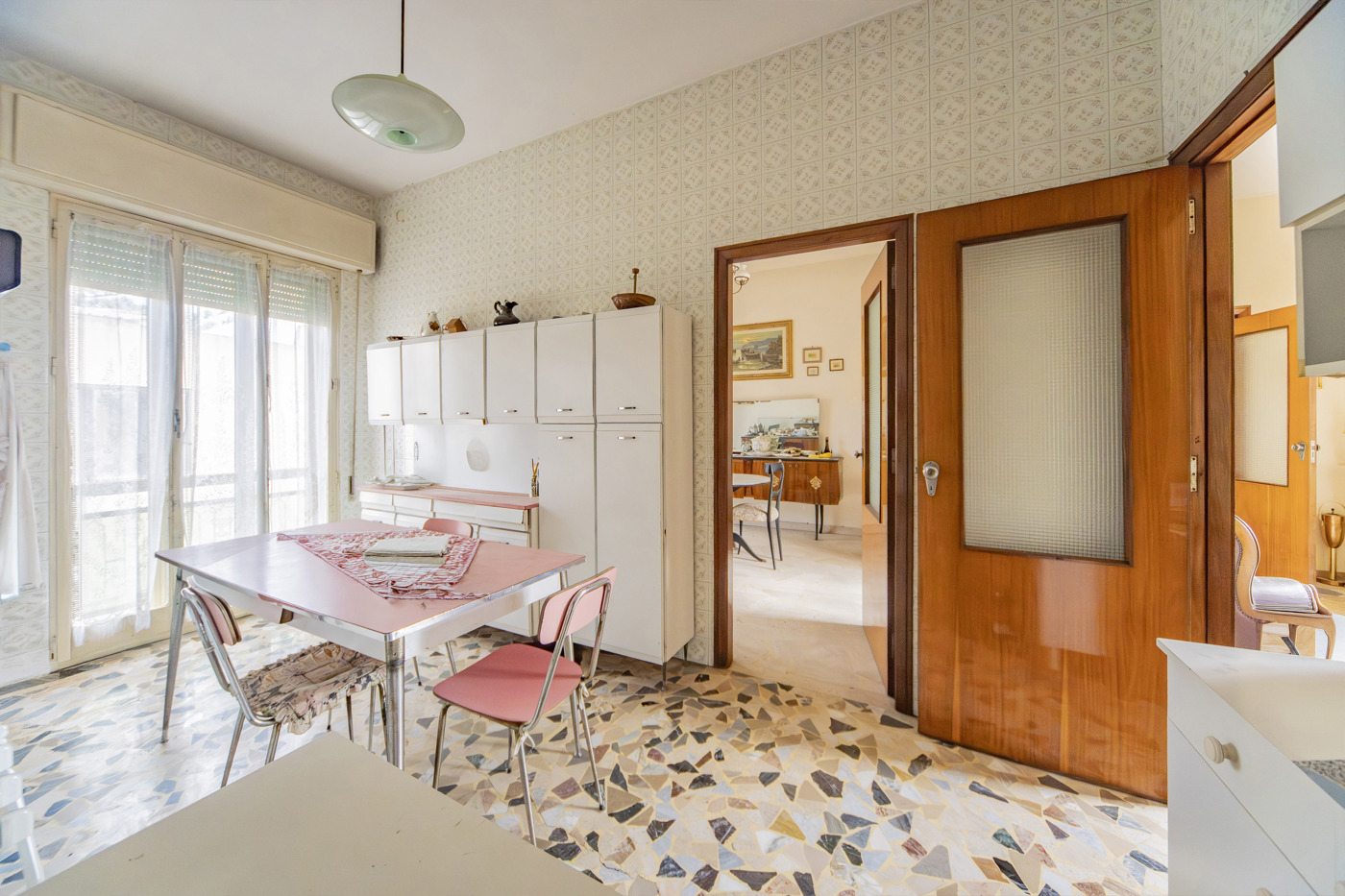 . Lappartamento si sviluppa su una superficie ampia e ben articolata, ed attualmente composto da: ingresso, sette camere di dimensioni comode e regolari, facilmente adattabili a diverse esigenze abitative, cucina abitabile, due bagni finestrati, pratico ripostiglio e due balconi che garantiscono sfogo esterno e buona luminosit agli ambienti.