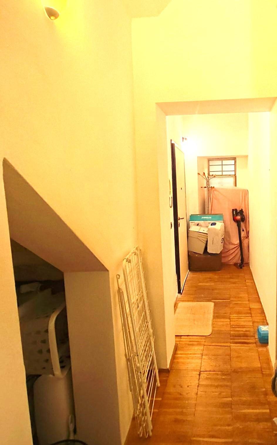 Situato al piano terra, questo appartamento offre comfort e praticità con spese condominiali mensili di soli 50 Euro. La casa ha ottime rifiniture in parquet un 'ampia zona soggiorno con cottura separata m un pratico ripostiglio sottoscala dove è posizionata la zona lavanderia, il reparto notte anche se trattasi di monolocale data la metratura è stato schermato e separato da mobile a 4 ante rendendo la camera non a vista . Il bagno ( senza finestra con areatore ) ha uno spazioso piatto doccia con box doccia.