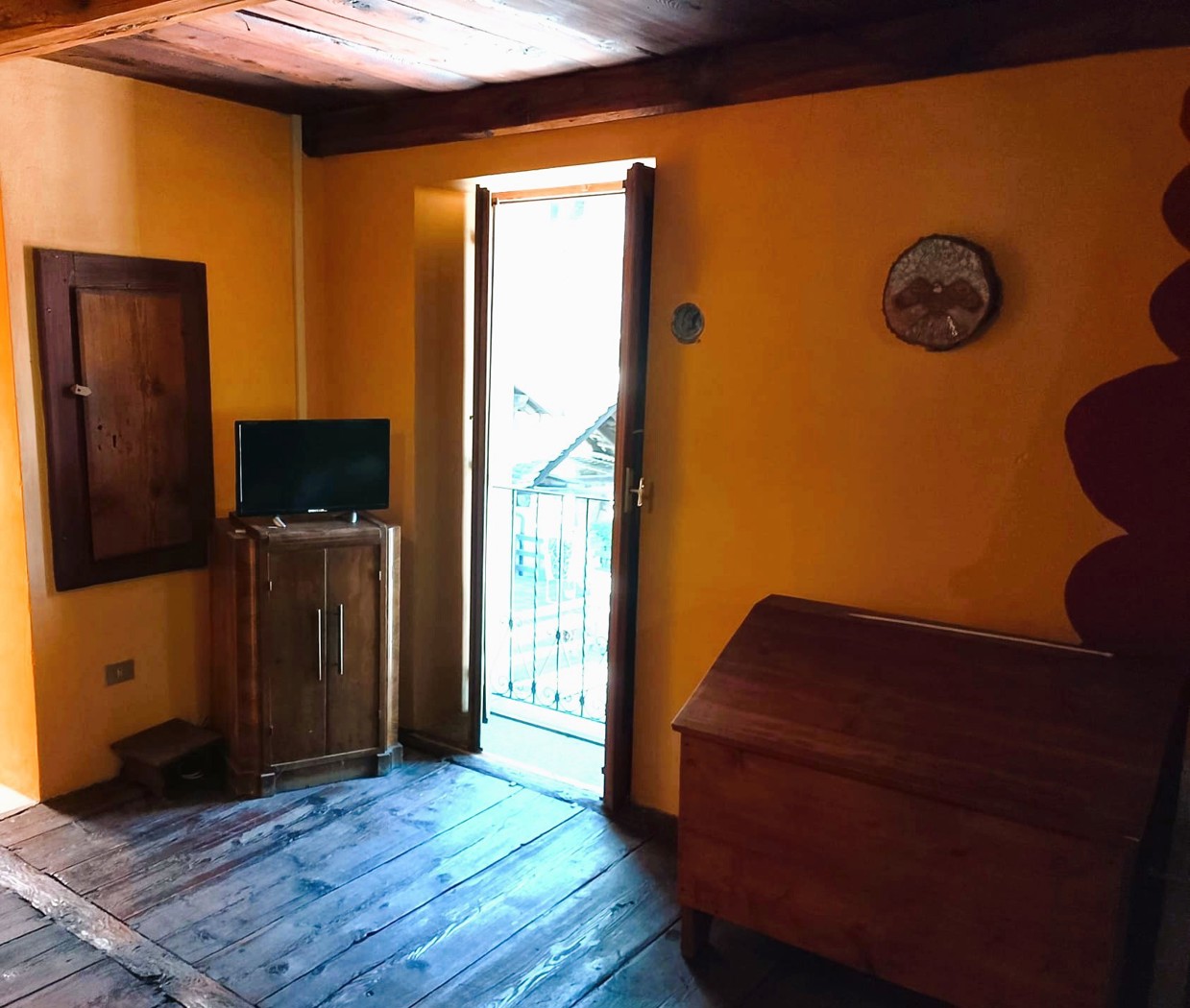 Assai luminosa la grande camera caratterizzata dalla lunga finestra nel tetto.