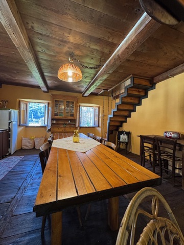 Comprende ingresso, zona giorno di mq. 40 con caminetto a legna, bagno, scala interna, alto sottotetto di mq. 40 con vari posti letto con altro bagno e soppalco.