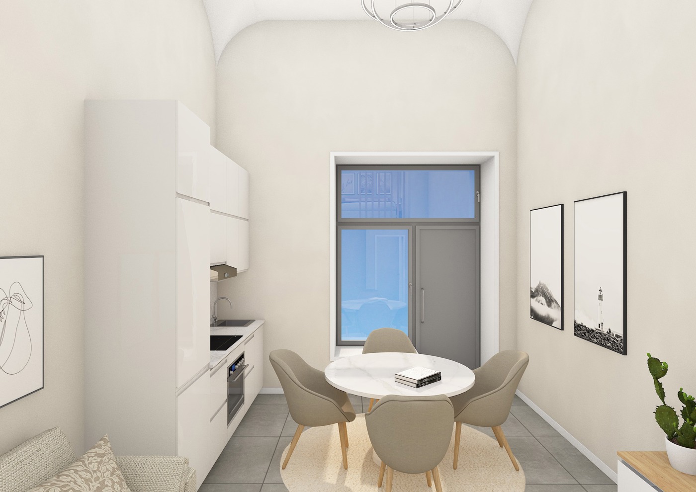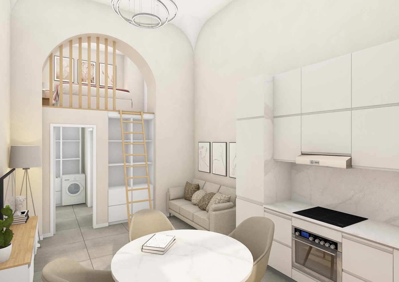 Entrando, lappartamento si aprir su un ampio soggiorno con angolo cottura dove ci sar possibilit di un divano letto, sar presente inoltre un comodo soppalco di circa 10 mq, una cabina armadio ed un ampio servizio.