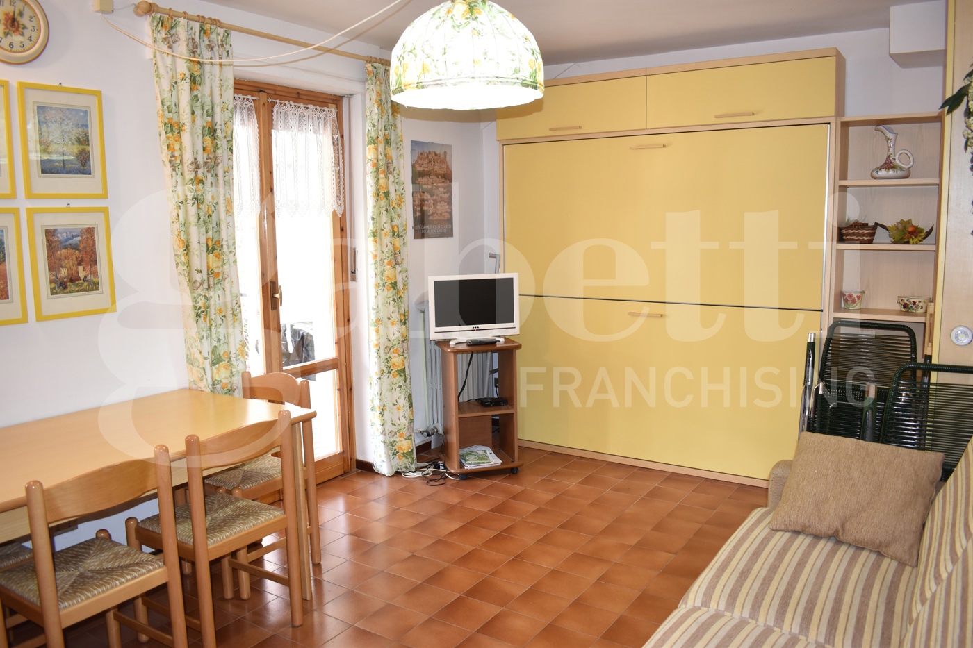 Jouvenceaux, via Fraiteve Cond. BAYA, a pochi passi dall'impianto di risalita, al secondo e ultimo piano appartamento monolocale composto a ingresso su soggiorno con angolo cottura a vista, divano letto matrimoniale e letto a castello a scomparsa, bagno finestrato con doccia e possibilit di installare lavatrice e ampio terrazzo coperto adatto anche a pranzare fuori nel periodo estivo.