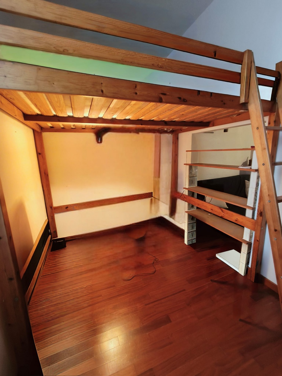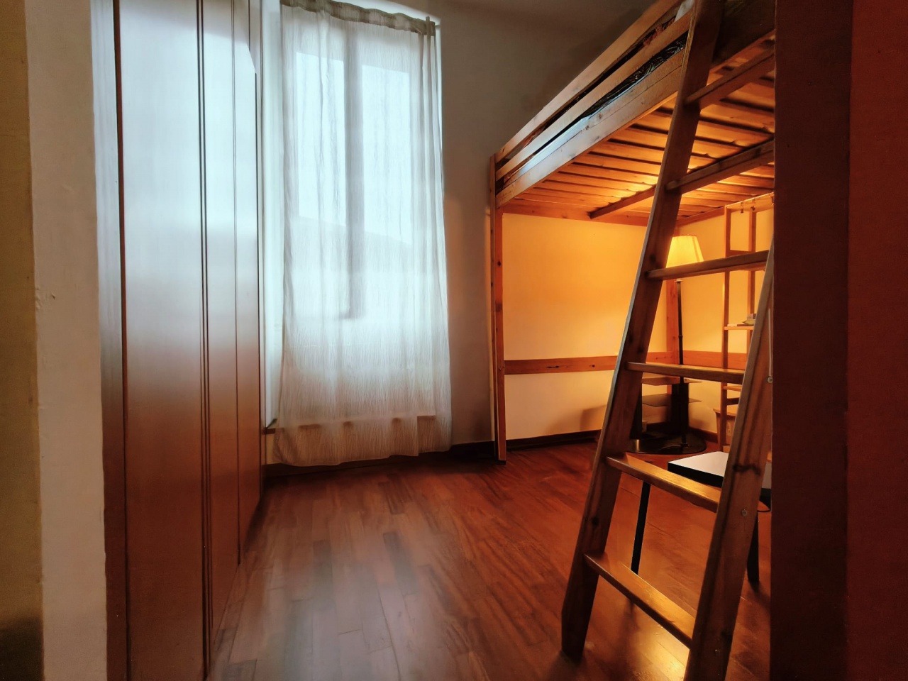 Internamente e' composta da un ingresso che conduce a un luminoso soggiorno con cucina a vista, perfetto per momenti di convivialità, con una parete-arredo con la quale si e' riusciti a ricavare una discreta zona notte, arricchita da un soppalco accogliente e funzionale oltre ad un bagno finestrato con vasca.