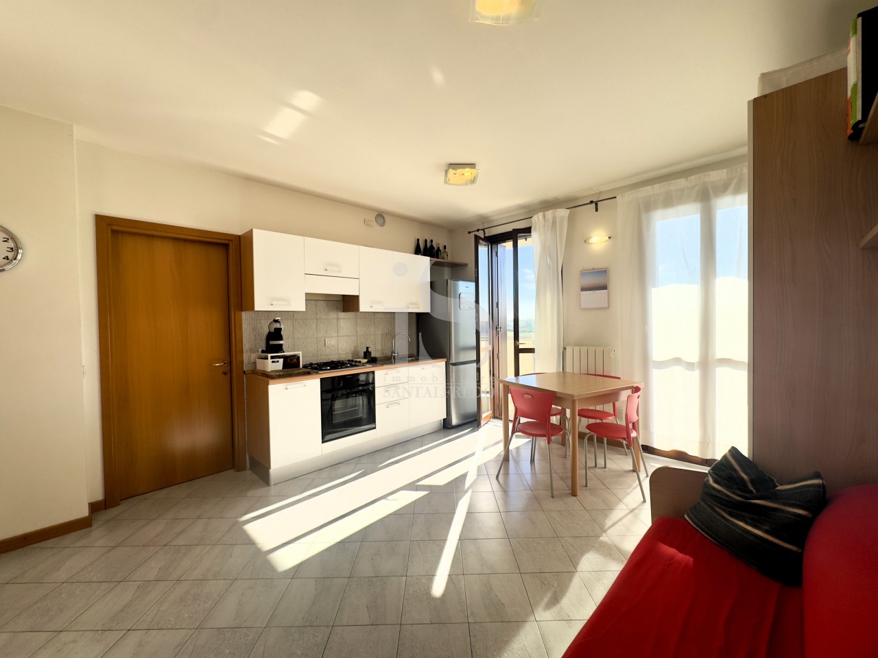 In un contesto residenziale recente (2009) e ben mantenuto, al secondo piano di una palazzina servita da ascensore di soli tre piani, proponiamo un monolocale con terrazzo coperto esposto a sud, una soluzione che offre luminosit costante e una vista aperta sui campi, senza edifici a interrompere l'orizzonte.