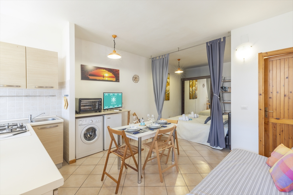 Monolocale a 50 metri dal mare con piscina e campo da tennis Lu Bagnu Via Torino 2 Piano terra A soli 50 metri dal mare, nel cuore di Lu Bagnu, proponiamo in vendita un grazioso monolocale di circa 36 mq, situato al piano terra allinterno di un curato complesso condominiale dotato di piscina e campo da tennis: una soluzione perfetta per chi sogna il mare a due passi da casa. Limmobile è composto da: Ingresso su sala pranzo/zona giorno, luminosa e ben organizzata Zona notte separata grazie a una pratica tenda divisoria Bagno comodo con box doccia Il vero valore aggiunto? La posizione.