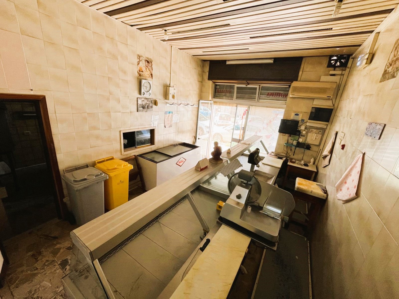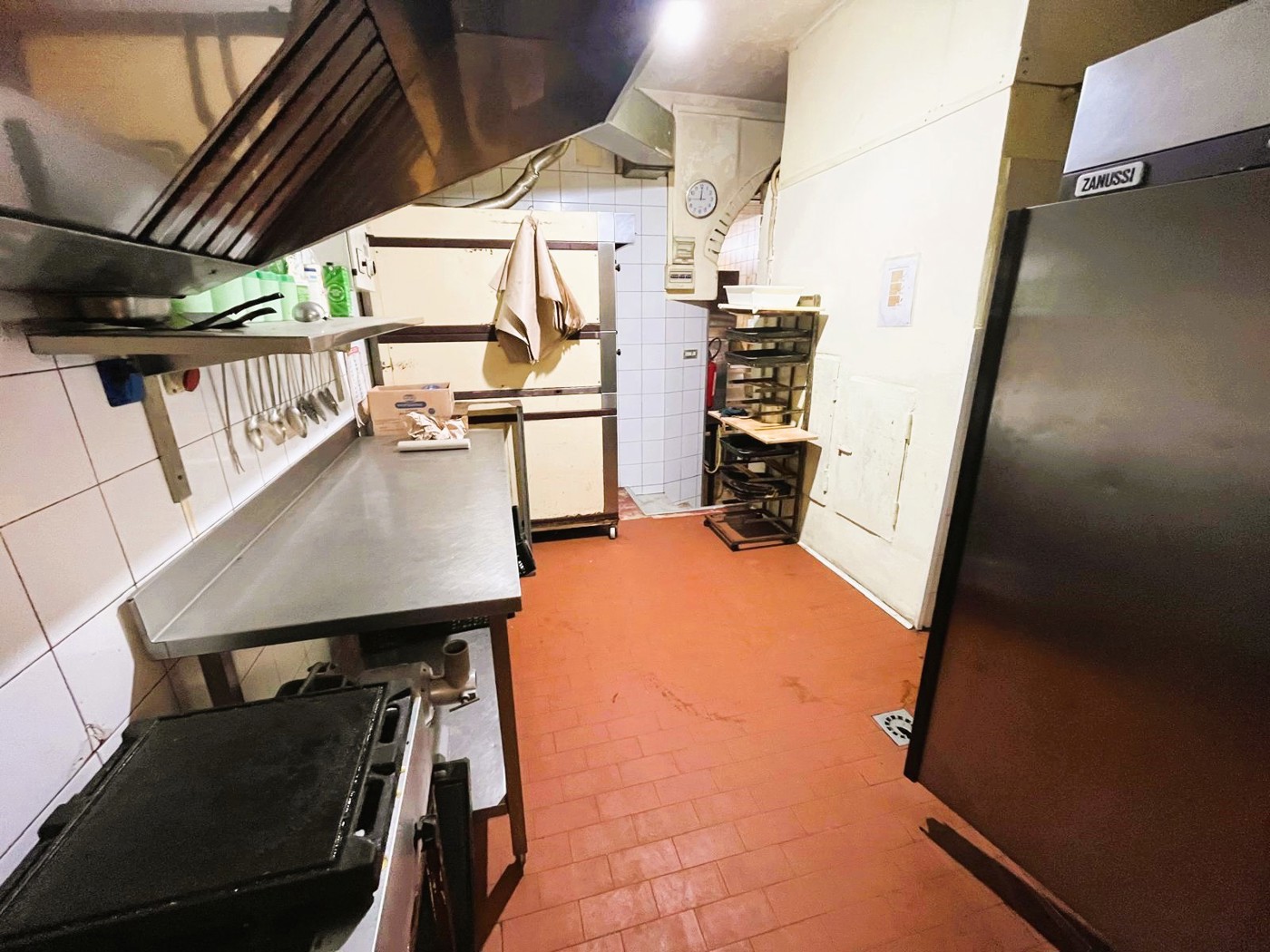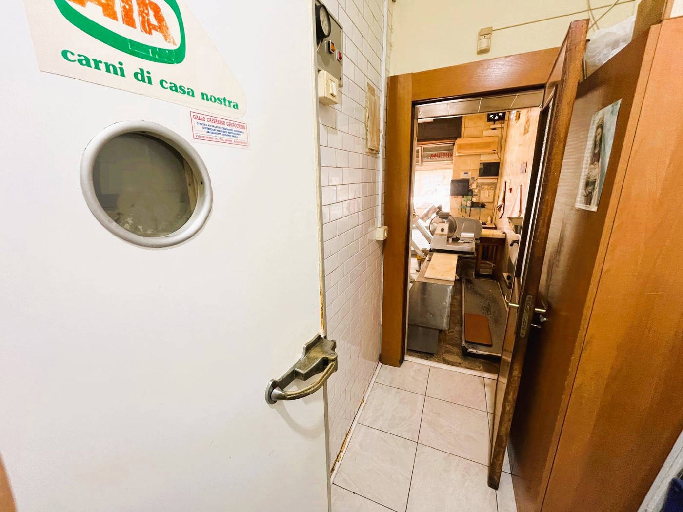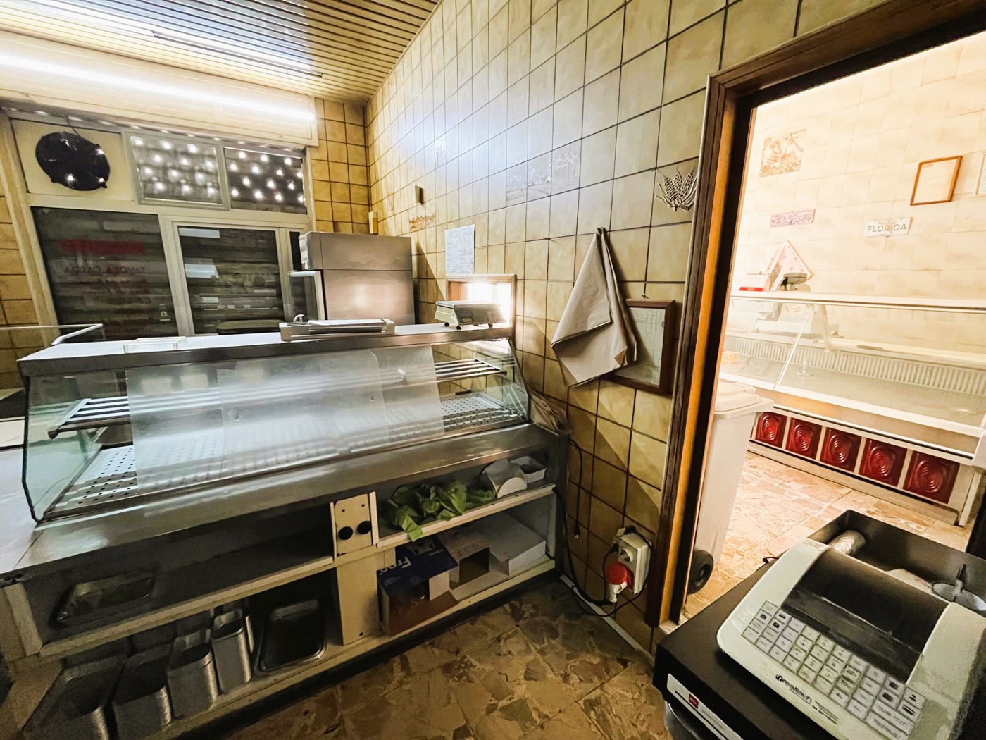 L'immobile ha due ingressi con due vetrine esposte su strada che danno accesso a due sale, a seguire la cucina, una cella frigorifera ed il bagno.