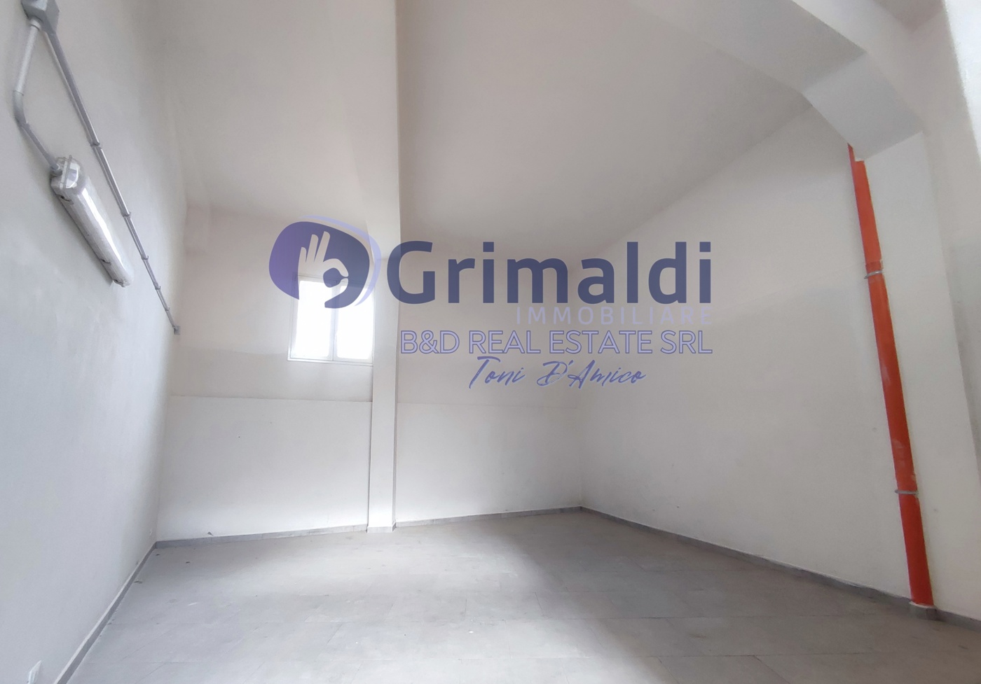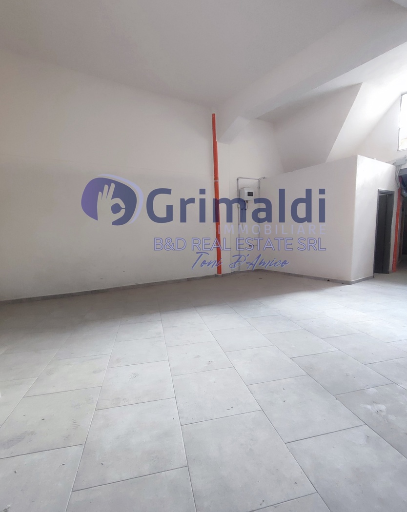 Lingresso si apre su un ampio e luminoso vano open space, facilmente personalizzabile e adattabile a diverse esigenze professionali o commerciali.