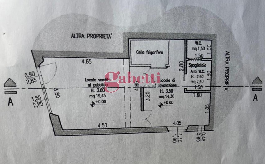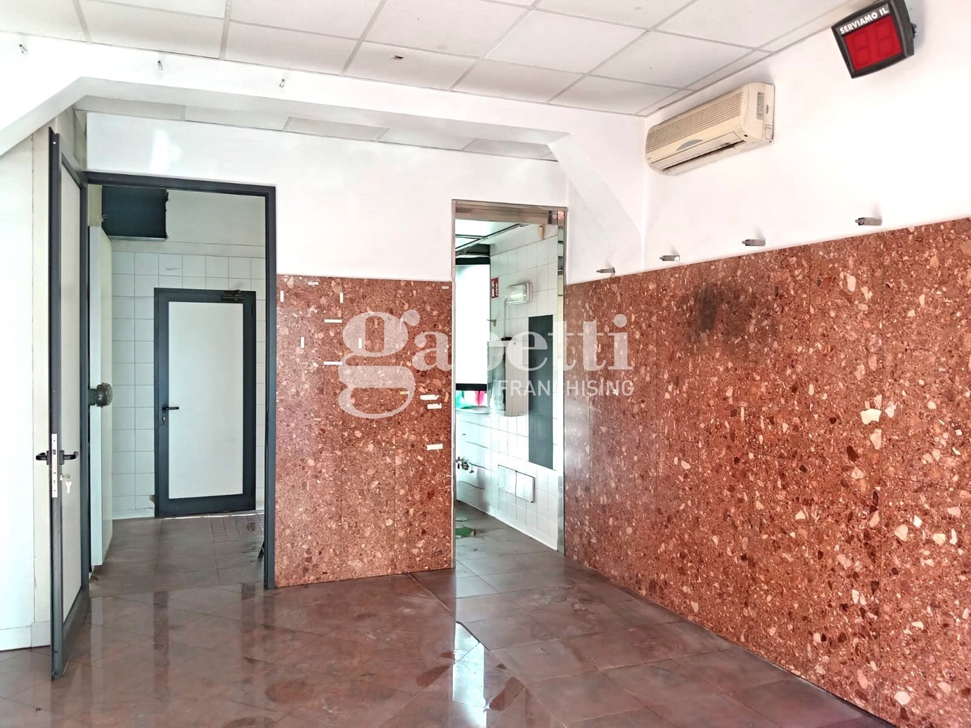 L'immobile risulta composto da un primo ambiente di circa 20 mq destinato al pubblico, un secondo ambiente finestrato nella parte tergale e da un servizio con antibagno.