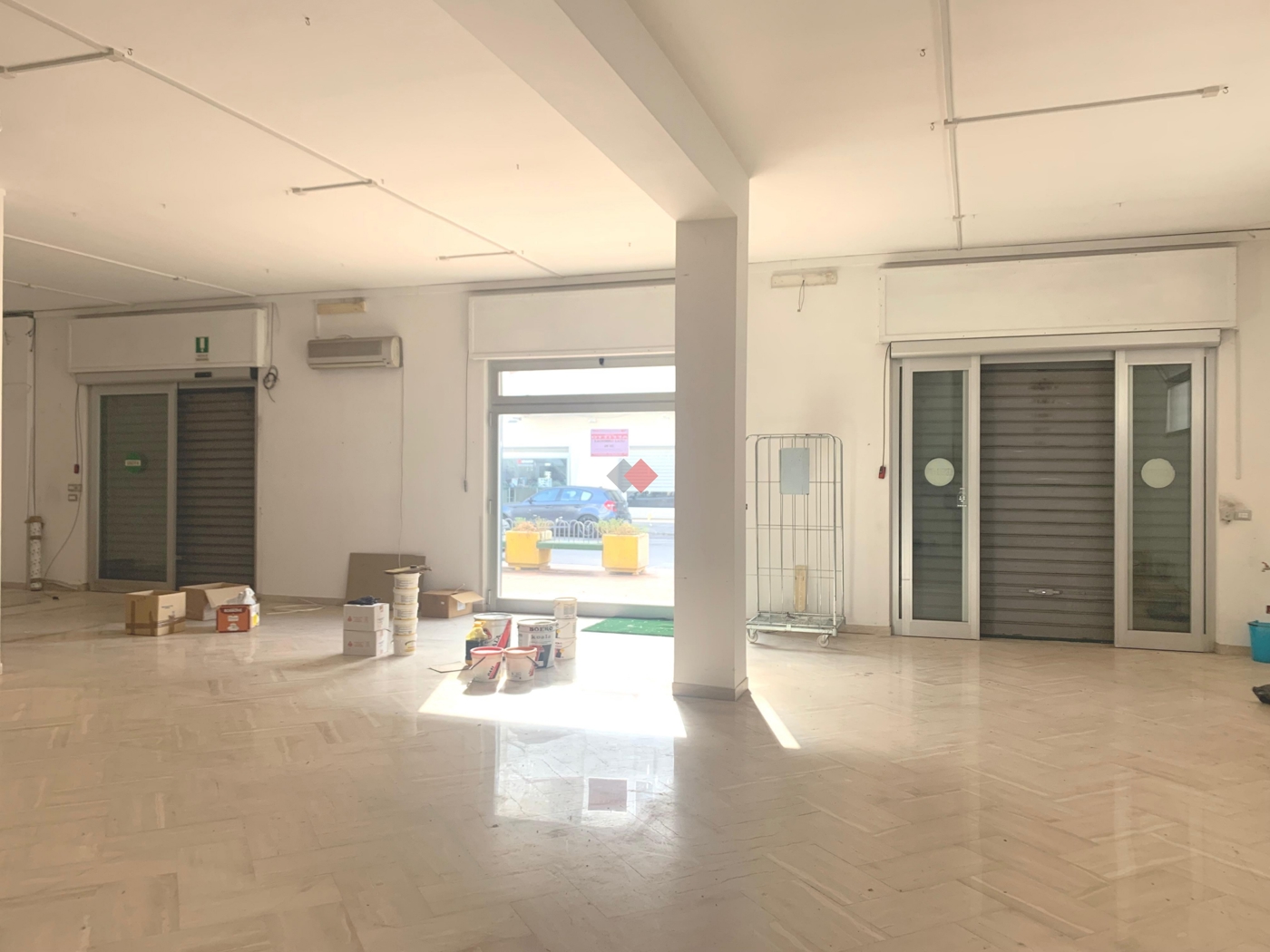 LOCAZIONE LOCALE COMMERCIALE A GROTTAGLIE In zona di alto passaggio veicolare, proponiamo in affitto un ampio locale commerciale di circa 260 mq, con un cortile antistante di propriet esclusiva di circa 85 mq. L'immobile, caratterizzato da ampie superfici finestrate, dispone di ben quattro vetrine, doppio ingresso, impianto di condizionamento, bagno privato e pubblico.