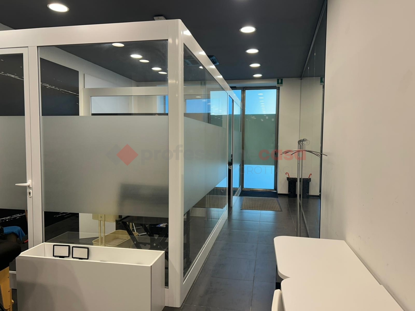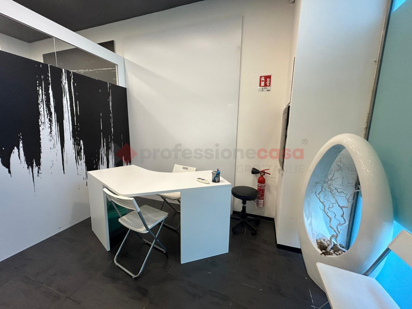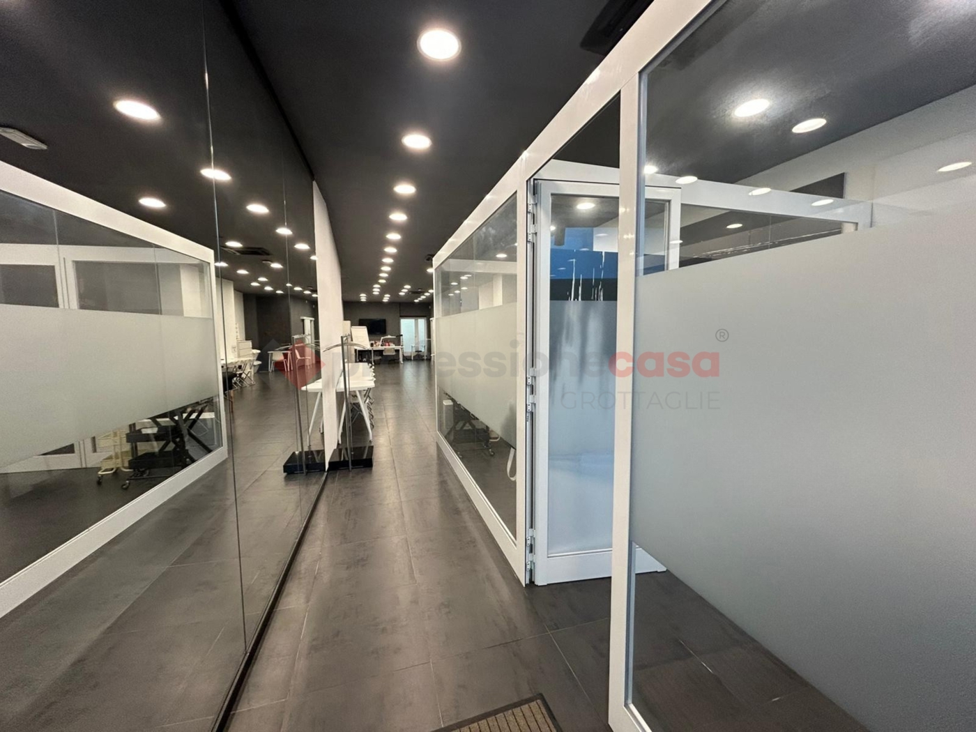 Attualmente l'ambiente prevede due stanze, pensate per attivit pi isolate e di back-office, e un ampio spazio sul fondo.