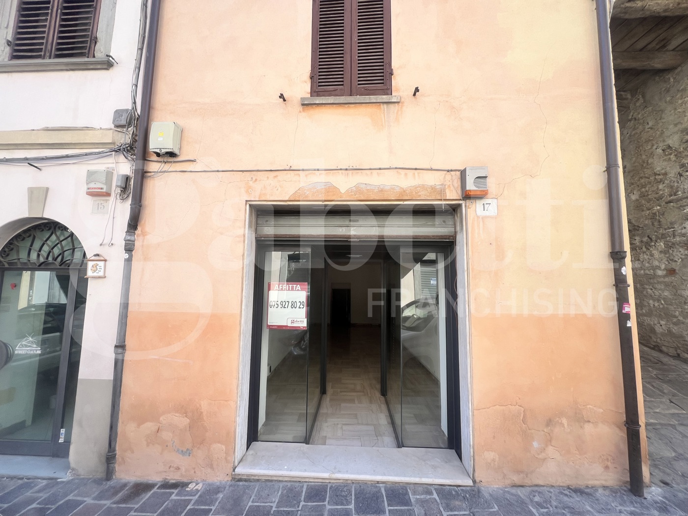 Nel cuore del suggestivo centro storico di Gubbio, in posizione strategica ad alto passaggio pedonale e veicolare, proponiamo in affitto locale commerciale situato al piano terra, ideale per attivit di vendita al dettaglio, ufficio o servizi.