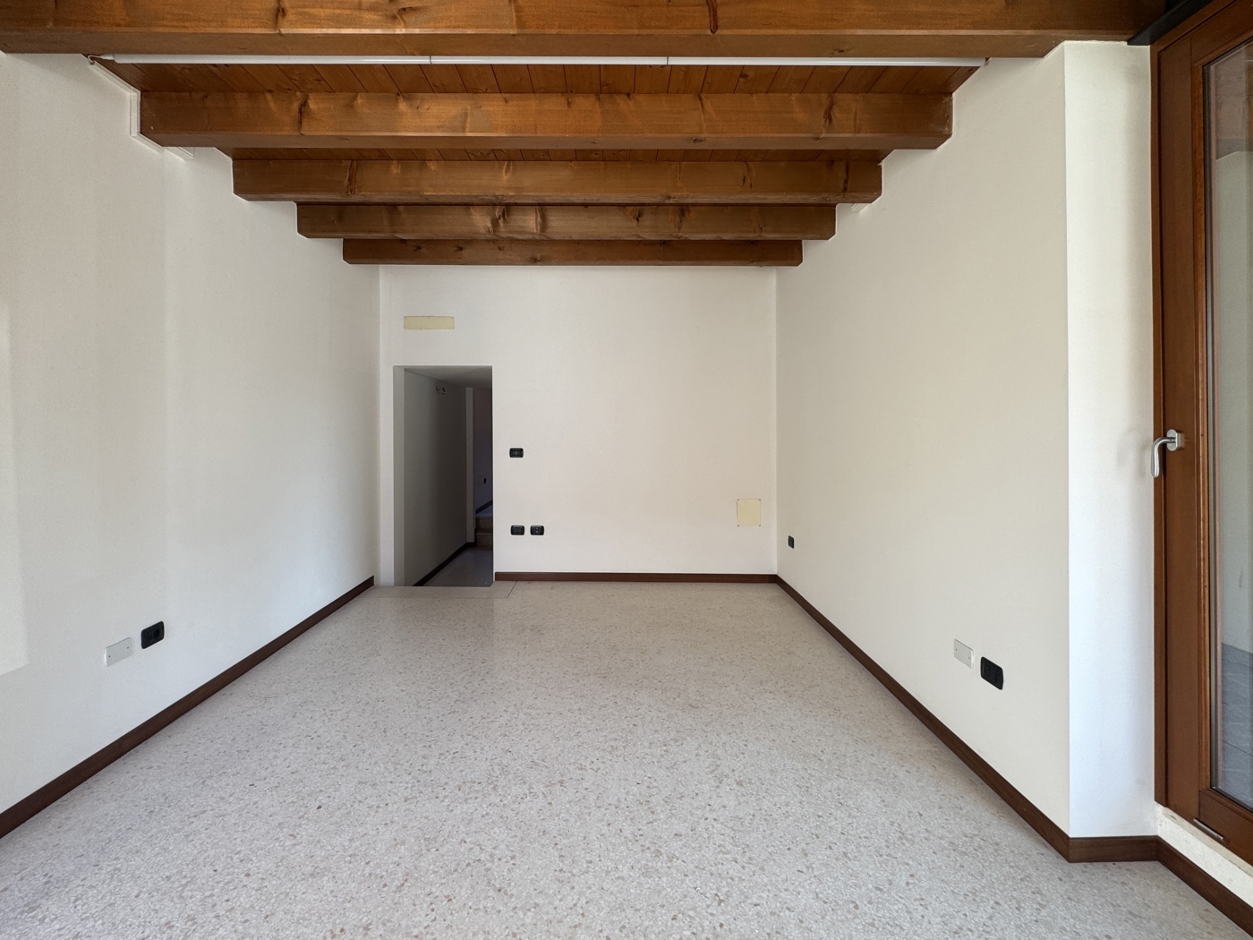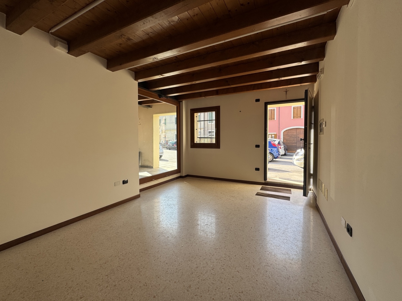 Limmobile si apre su un primo ambiente luminoso e accogliente, perfetto come area vendita o accoglienza clienti.