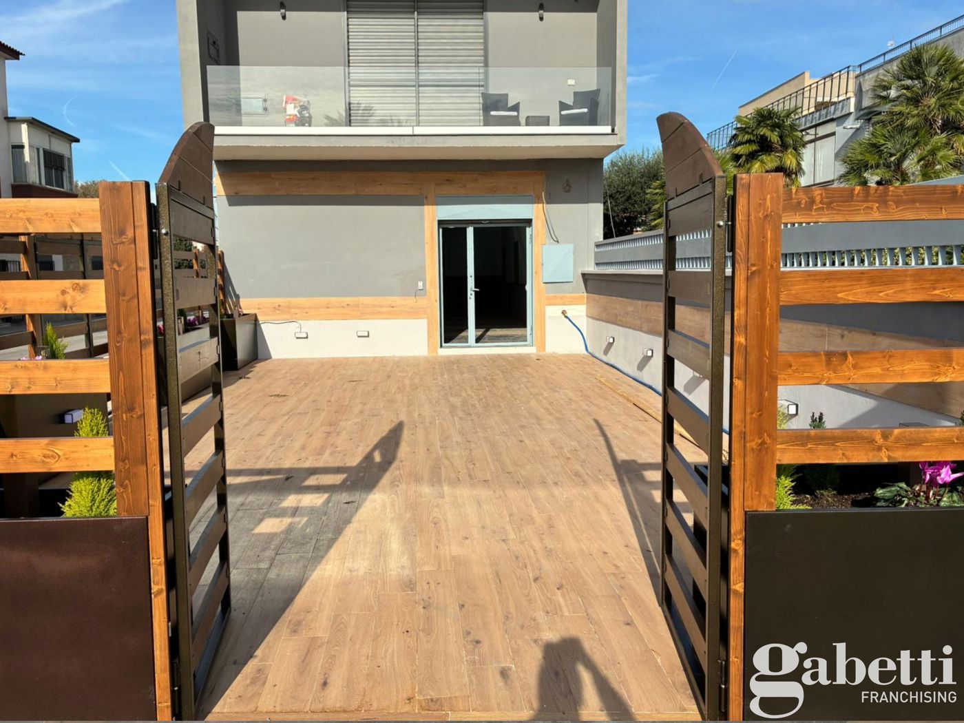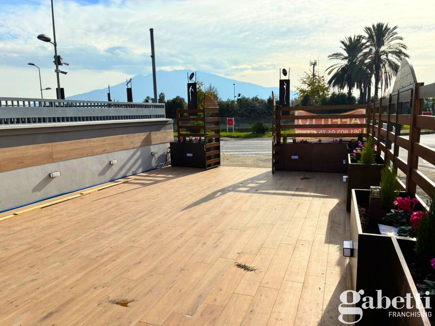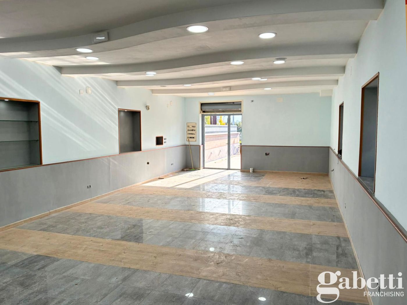 ZONA NAZIONALE Su via Nazionale delle Puglie, in posizione ad alta visibilit e a forte passaggio veicolare, proponiamo in locazione locale commerciale di 100 mq con spazio esterno recintato di 110 mq, ideale per attivit di ristorazione.