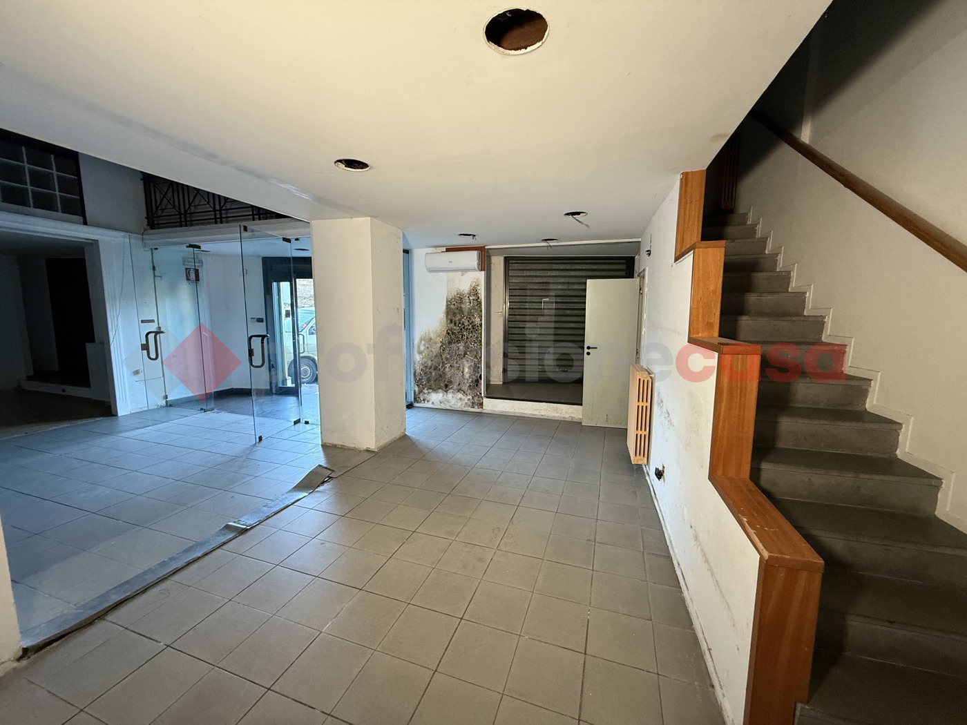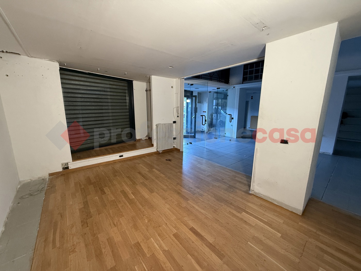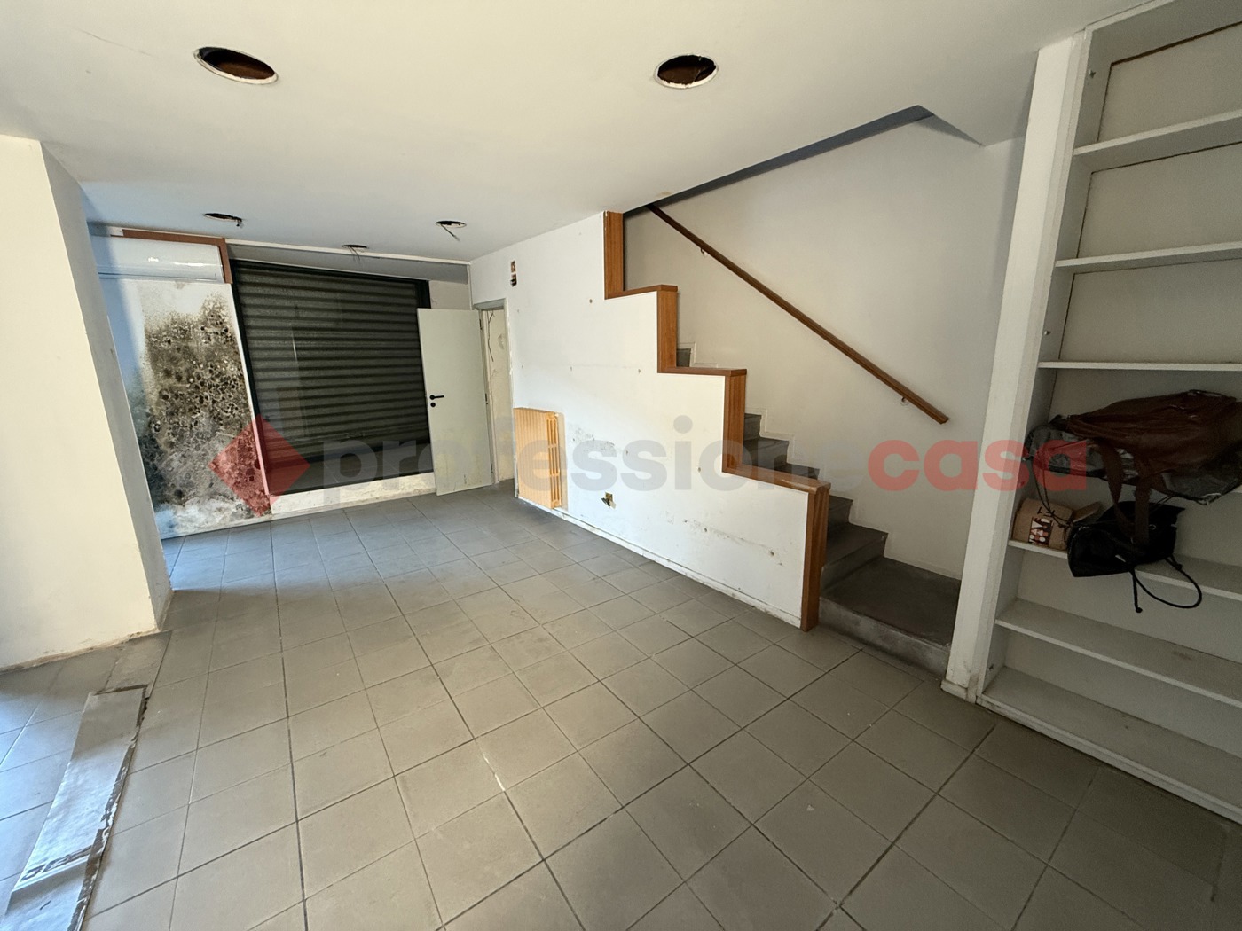 L'immobile dotato di tre vetrine alla strada e composto da: ampio ambiente a piano terra di 100 mq (h max 5,20m), bagno con antibagno e ampio soppalco (h 2,50 m) cui si accede da scala in muratura, distribuito su tre lati, con finestre che affacciano su cortile interno.