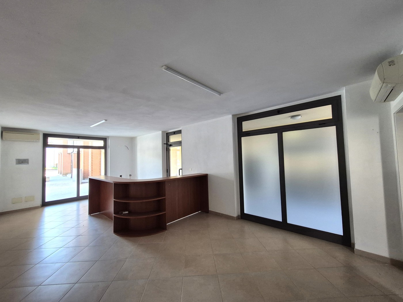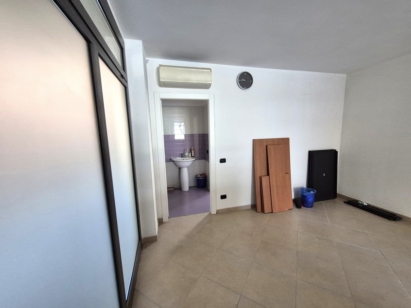 Internamente, lo spazio configurato come un generoso open space, un ambiente versatile e facilmente personalizzabile in base alle proprie esigenze lavorative, completato da un funzionale disimpegno e dai servizi igienici.