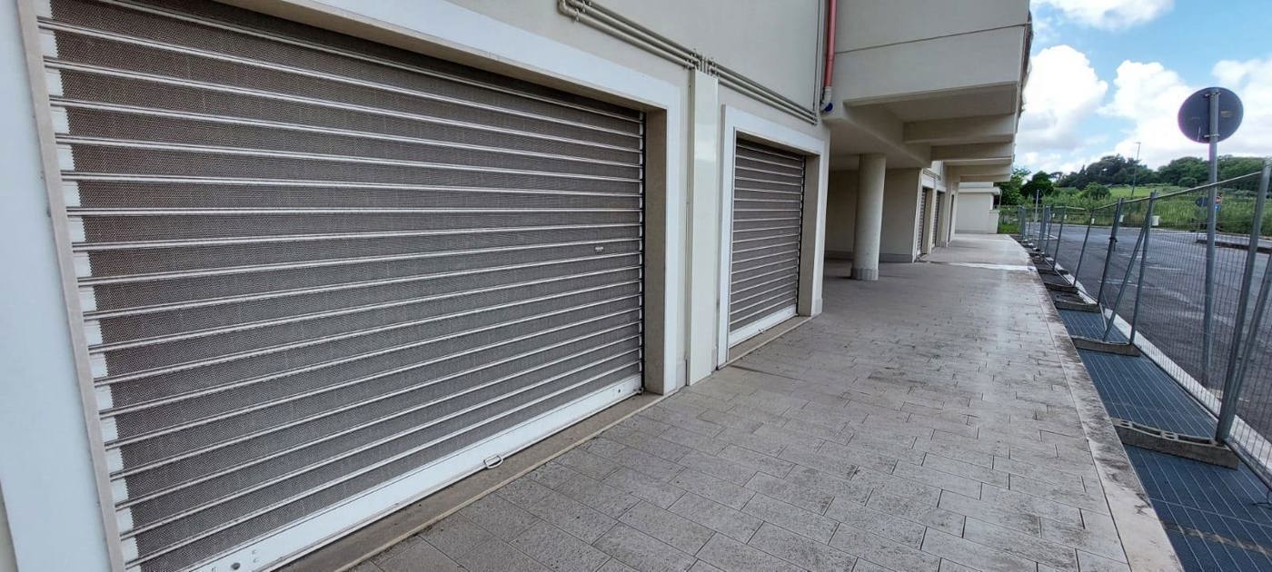 Con una superficie di 100 mq, questo spazio offre un ampio open space con un'altezza di 3,50 metri, bagno con anti-bagno, 2 vetrine con affaccio diretto su strada (via Ponente), 2 vetrine con affaccio sul marciapiede interno, che separa la palazzina "A" dalla palazzina "B", ed una finestra posteriore che affaccia sul cortile condominiale.