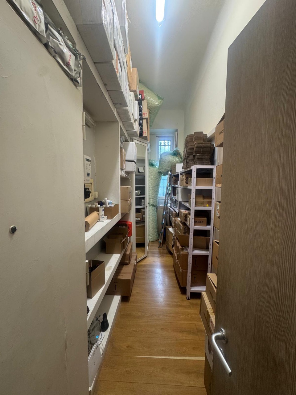 Il bagno si trova nel cortile esterno del condominio e include una parte situata nel retro da adibire a studio o magazzino.
