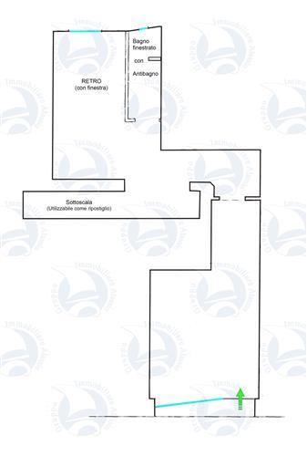 Una vetrina, due vani, bagno finestrato, ripostiglio.