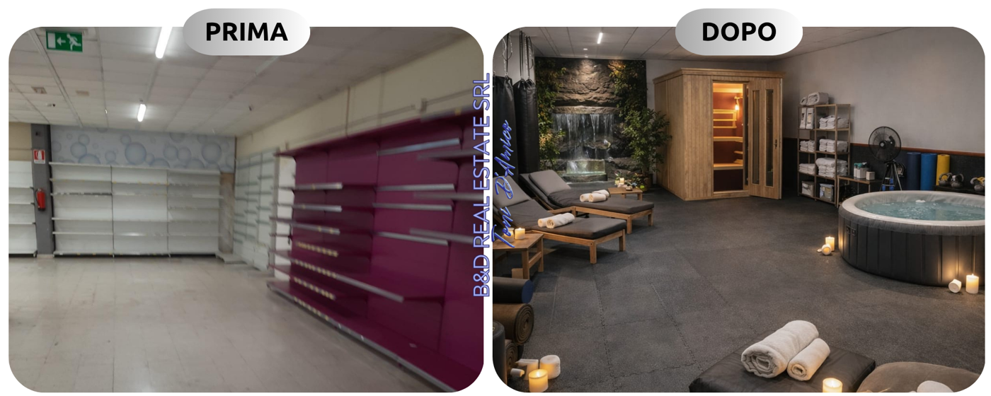 Il grande negozio offre tutto lo spazio e la versatilit necessari per ospitare molteplici attivit, come ad esempio supermercati grandi marchi, o per divenire un elegante show room di arredamento, o una funzionale palestra.