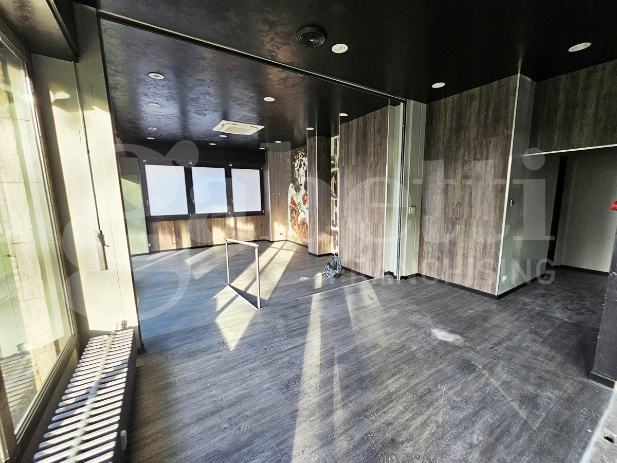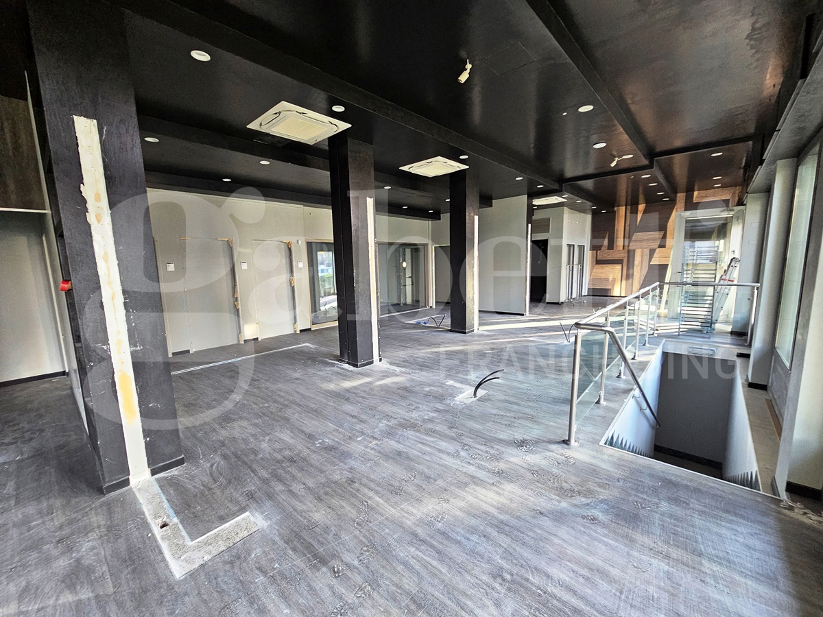 Il piano terra, di circa 240 mq, interamente dedicato alle attivit di front-office e rappresentanza con: - un ampio ambiente open-space caratterizzato dalle 10 vetrine fronte strada, che assicurano la massima esposizione del marchio e dei prodotti; - un'area separata e riservata, ideale per gestione amministrativa o colloqui riservati; - tre servizi igienici.