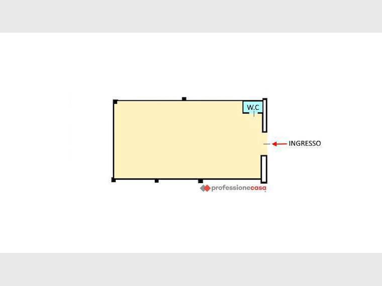 E' composto da un unico ampio vano con servizio igienico, una configurazione open space che permette di adattare facilmente l'arredo a qualsiasi esigenza professionale.