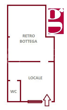 Internamente si sviluppa in verticale con una camera ed il bagno all'ingresso e un ampio retrobottega.