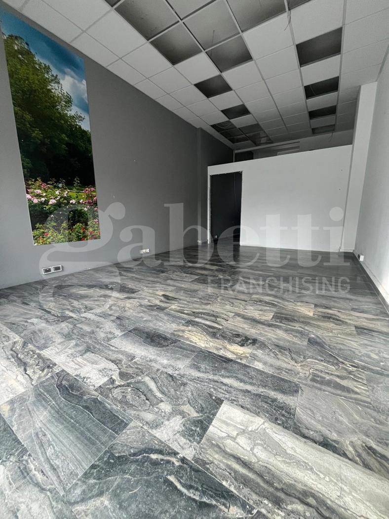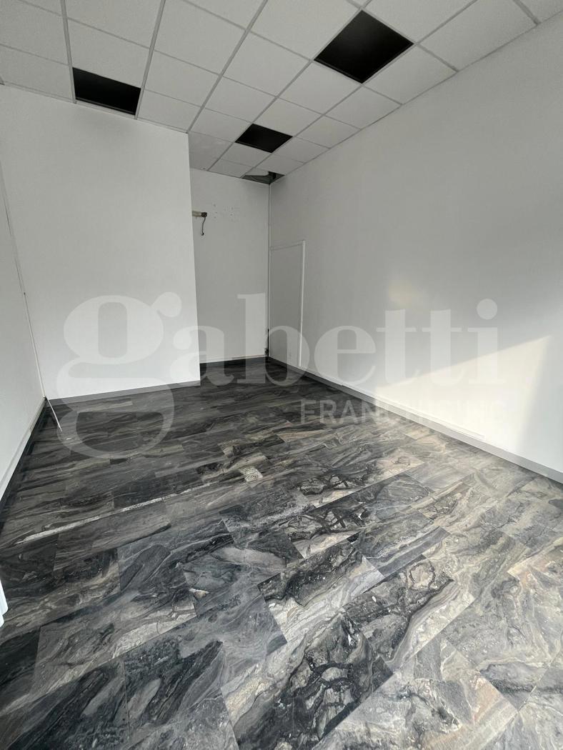 Al momento presente un divisorio in cartongesso che rende il negozio ideale per uno studio medico.