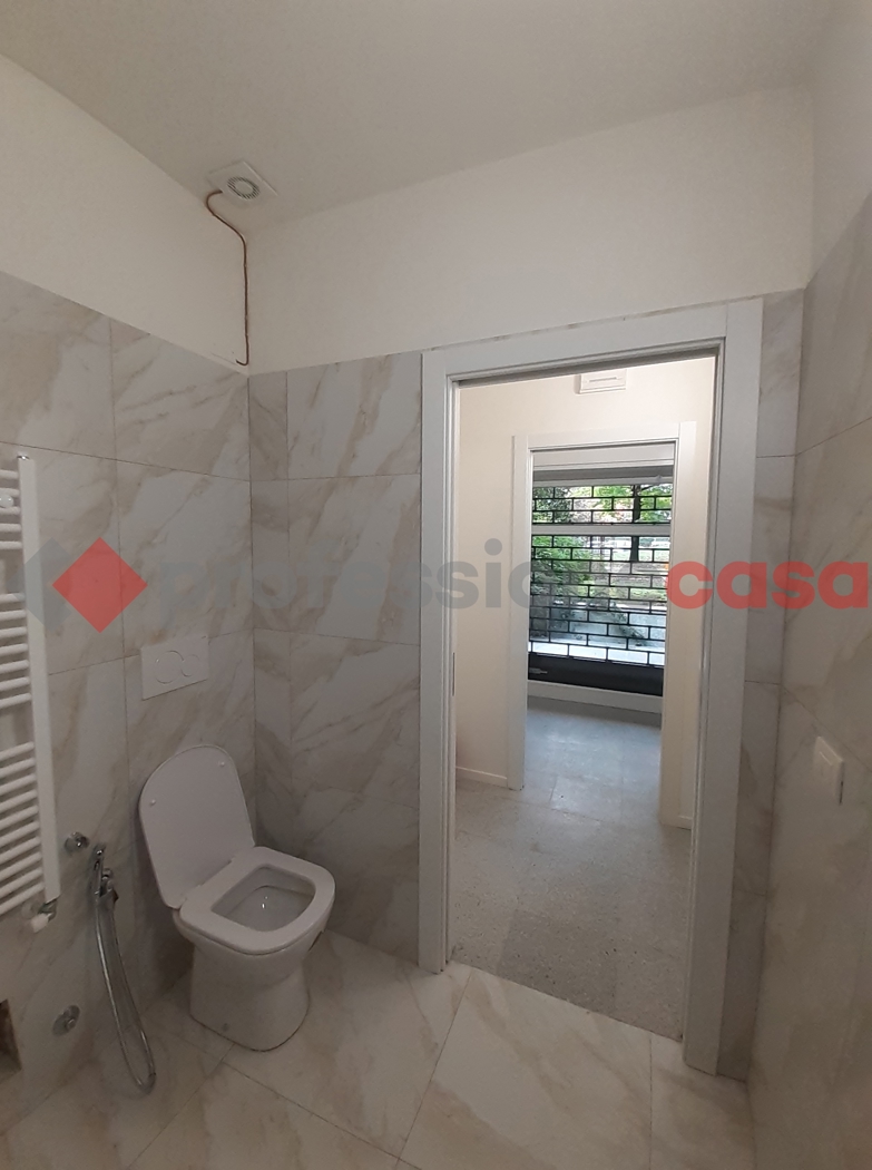 Il negozio si compone di 4 luci lato strada con 2 porte d'ingresso/uscita e altre 5 luci lato cortile interno con altre 2 porte d'ingresso/uscita, al suo interno formato da unico locale open/space (di 84 mq) eventualmente divisibile tramite pareti mobili, oltre servizio igienico a norma, antibagno con quadro elettrico, presa per fibra e comando condizionatore, angolo ristoro illuminato e riscaldato con scaldacqua con predisposizione lavello e soppalco con scaletta mobile.