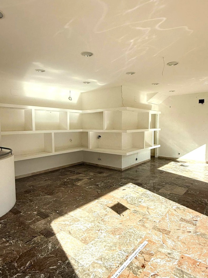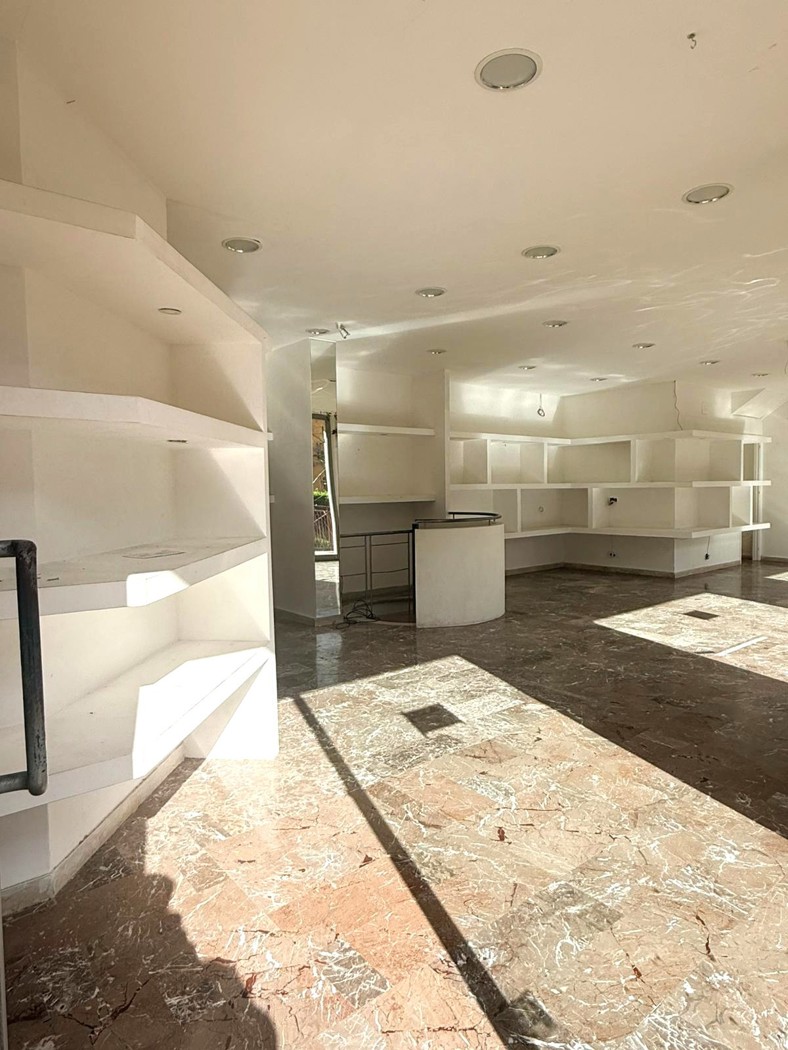 L'immobile al piano terra composto da un unico ambiente, oltre servizio, con controsoffitto dotato di faretti, espositori in cartongesso, pavimentazione in marmo e 3 vetrine su strada.
