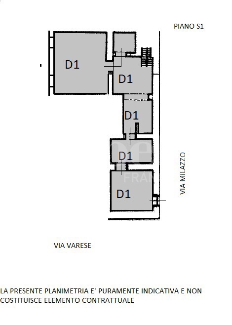L'immobile, ubicato in via Varese, gode di un'ottima posizione ad angolo con via Milazzo e di 3 accessi su strada e 2 vetrine.