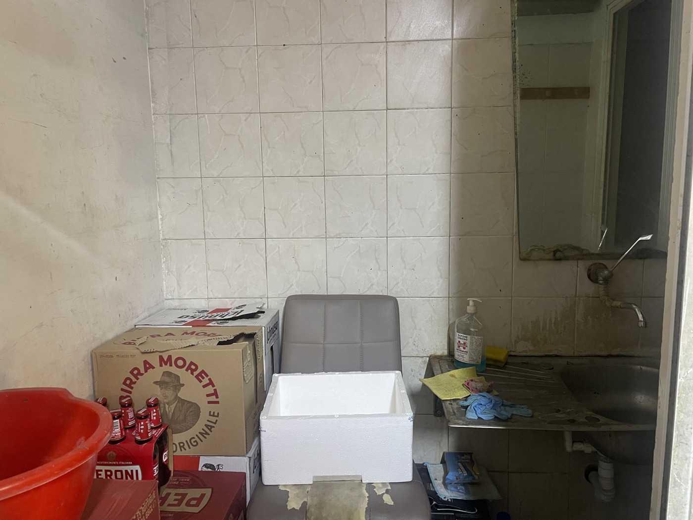 L'immobile costituito da un un unico ambiente con serranda manuale su strada, antibagno e bagno di servizio.