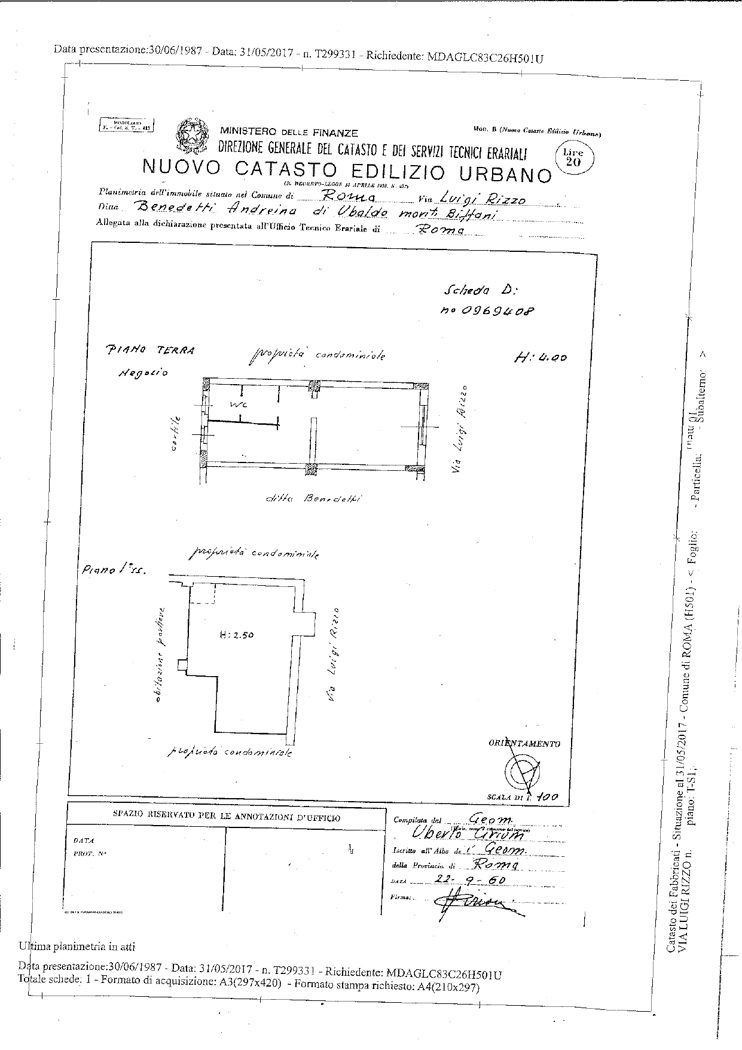 Il locale composto da due livelli: al piano terra C/1 con una vetrina su strada e servizio finestrato mentre al piano seminterrato C/2 uso magazzino.