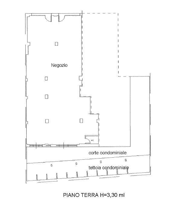 Il locale attualmente organizzato in un unico ambiente, ha un bagno finestrato con antibagno.