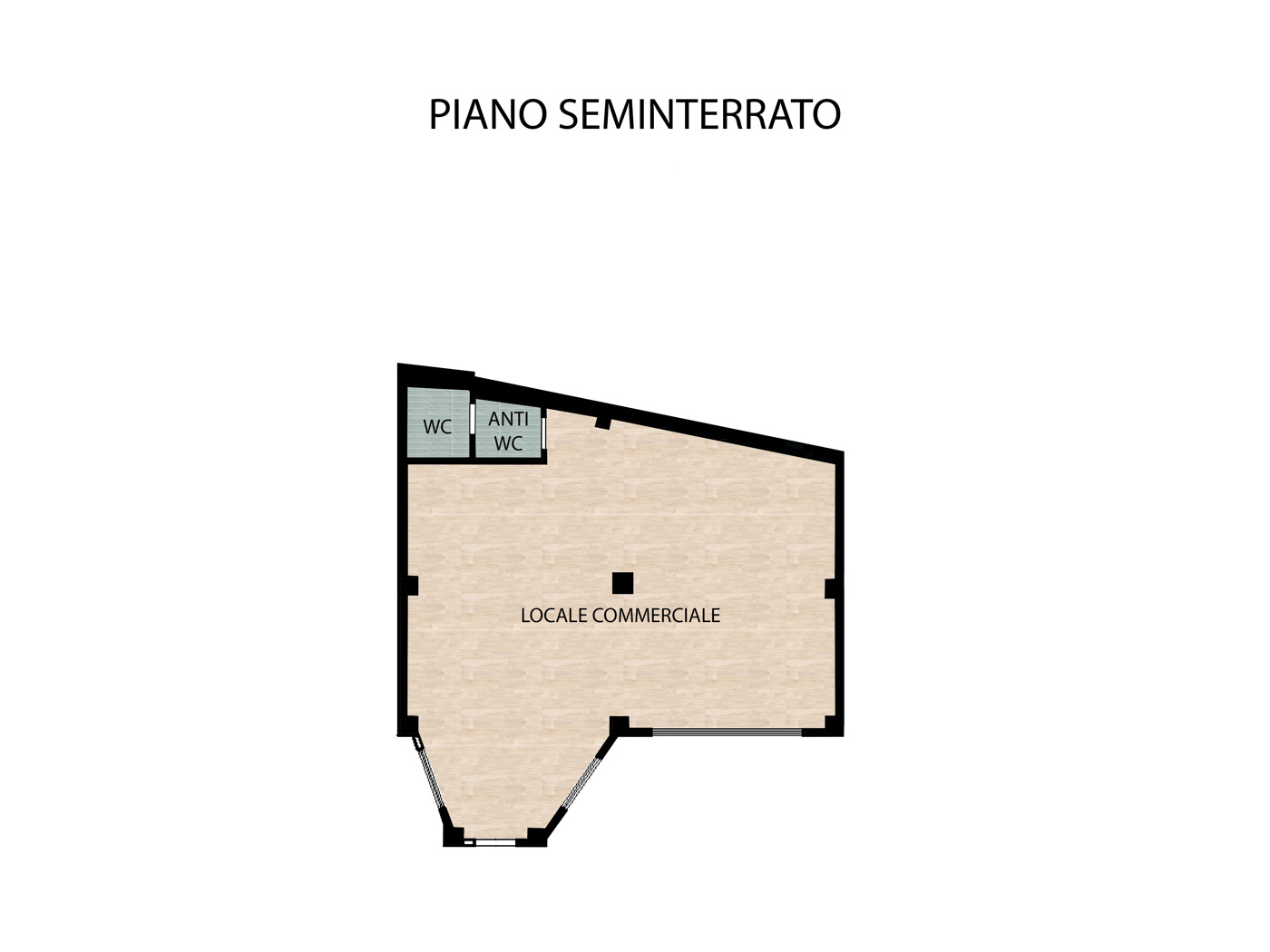 L'unit composta al suo interno da area vendita, antibagno e bagno.