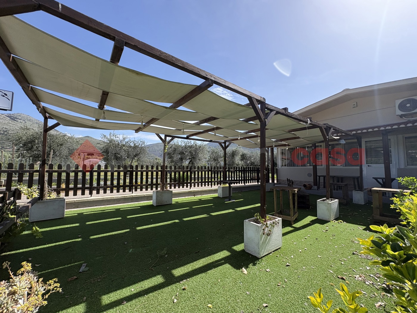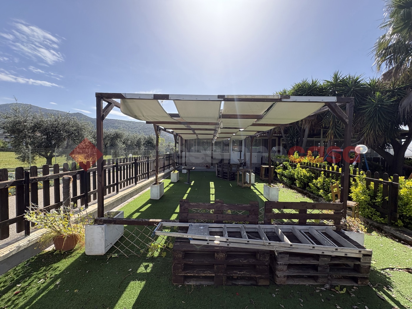 Esternamente vi sono aree dedicate e attrezzate per i pi piccoli, aree verdi con alberi ad alto fusto e un grande piazzale per il parcheggio di numerose auto. L'immobile completo di CANNA FUMARIA e si presenta in ottime condizioni manutentive, dotato di aria condizionata e pale ventilatori, cos come la cucina, fornita di tutte le attrezzature necessarie per la somministrazione.