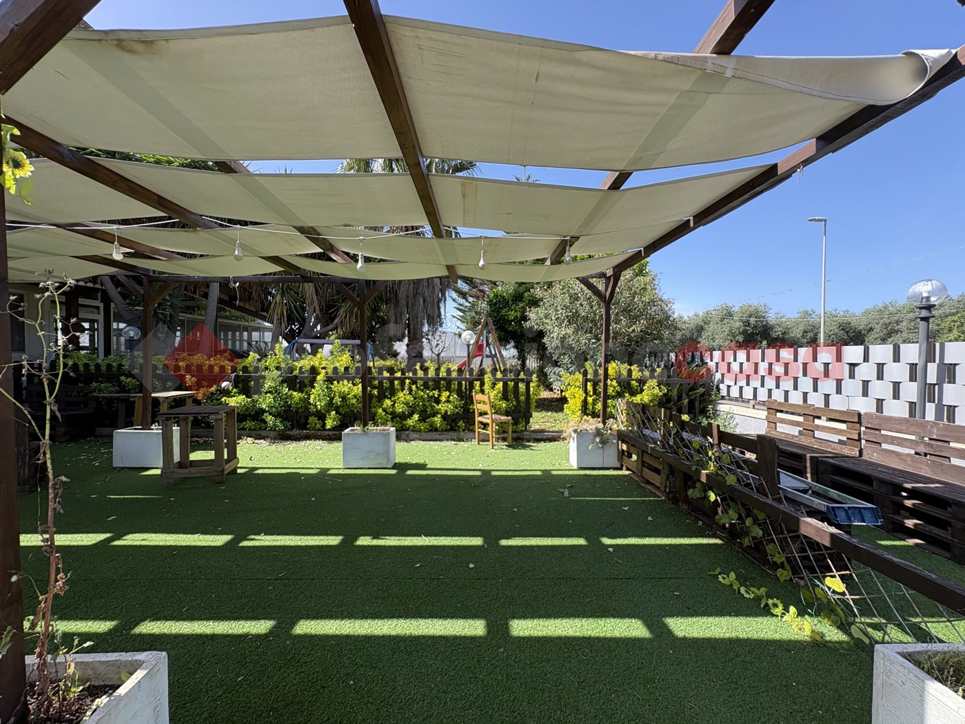 Completa l'area una grande zona verandata coperta attrezzata con tanti giochi per i bambini.
