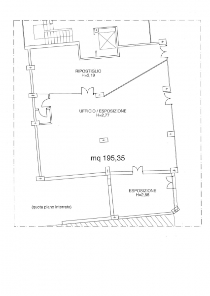 Negozio vetrinato ( 4 vetrine ) fronte strada di 195mq con comodo parcheggio fronte negozio.