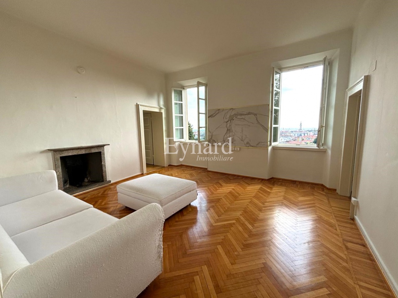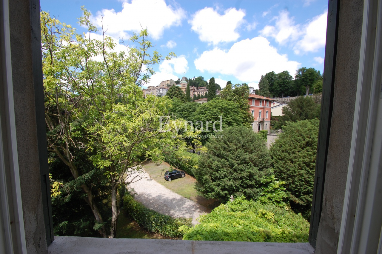 A807P Bergamo In un palazzo storico ai piedi di Città Alta, prestigioso e luminoso appartamento di 240mq posto al secondo piano con ascensore, esposto su tre lati, con affaccio sul parco secolare e città alta. L'immobile è così disposto: ingresso, cucina abitabile arredata e sala da pranzo, ampio soggiorno con camino, 3 camere da letto, cabina armadio, 2 bagni e lavanderia con due armadi.
