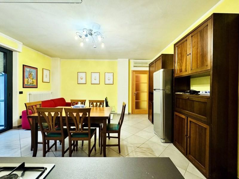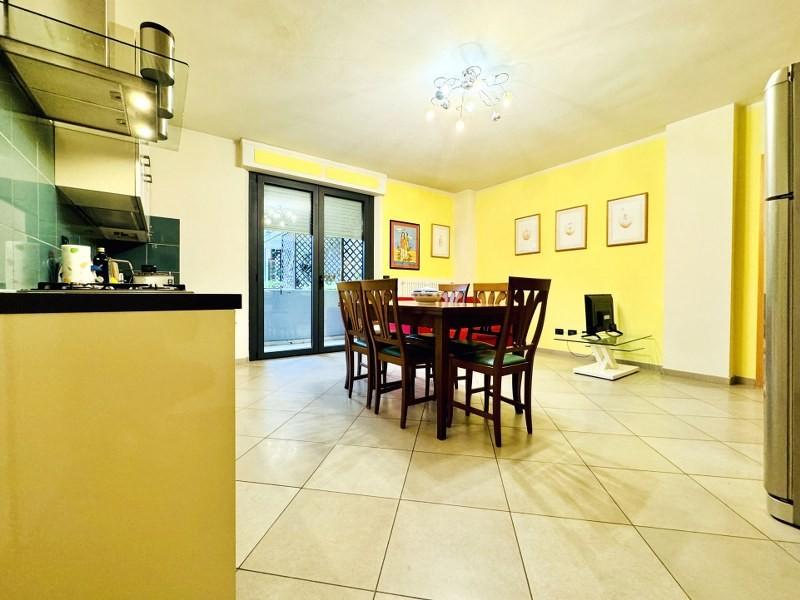 L'alloggio è servito da ascensore e posto bici. L'ingresso all'abitazione avviene nella zona giorno suddivisa in angolo cottura, sala pranzo e zona TV. Attraverso la porta a finestra si fuoriesce sulla terrazza con vista sul parco limitrofo.