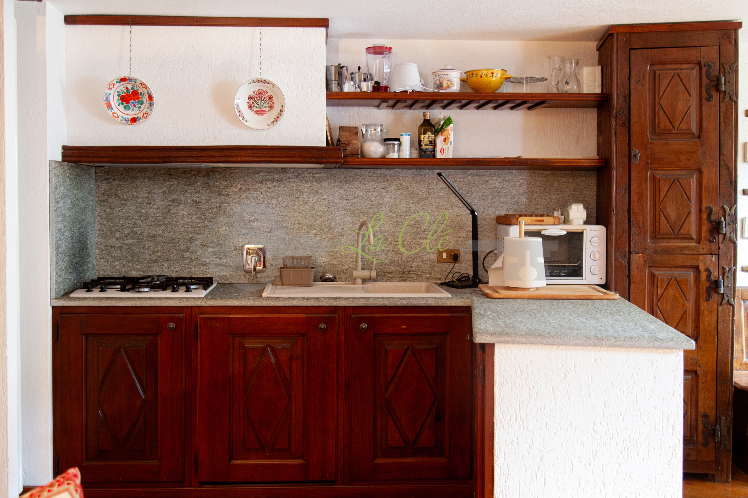 L'appartamento, posto al 1°, in TIPICA CASA IN PIETRA, è così composto: ingresso su disimpegno, soggiorno con zona pranzo, camino e accesso al balcone con vista sulla piazza; angolo cottura a vista (dotato di frigo piccolo con ghiacciaia, piano cottura 4 fuochi gas, forno microonde). La zona notte è composta da 1 camera matrimoniale, 1 bagno finestrato con vasca/uso doccia, 1 camera doppia con due letti singoli con bagno en suite con doccia.