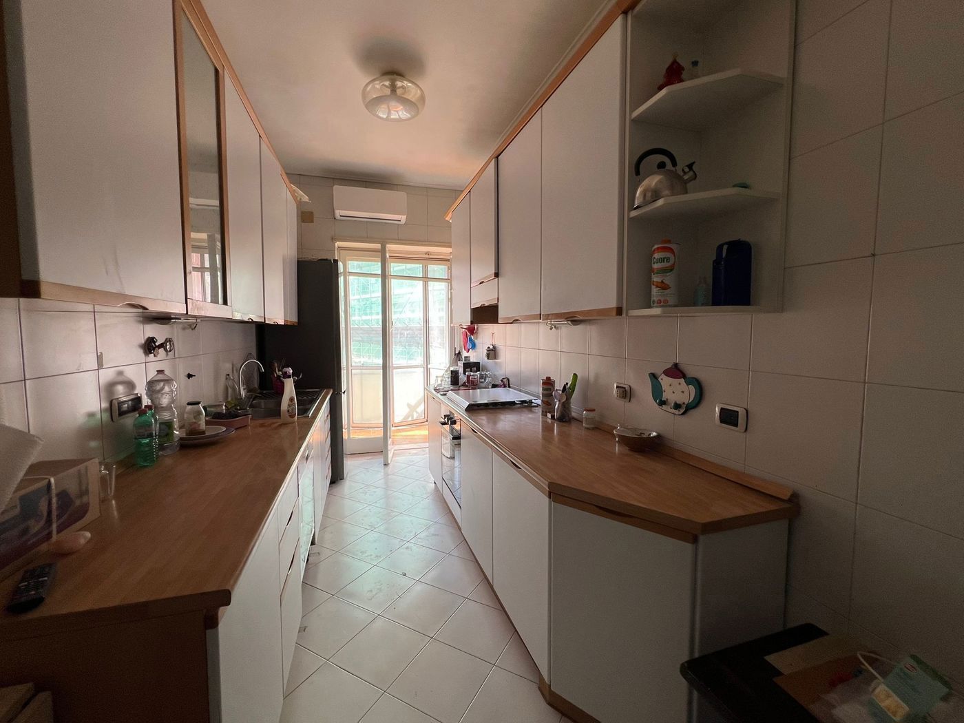 L'appartamento ha una quadratura di 148 mq ed composto da ampio ingresso, salone doppio, due camere da letto di cui una con bagno, cucina arredata ed ulteriore bagno.
