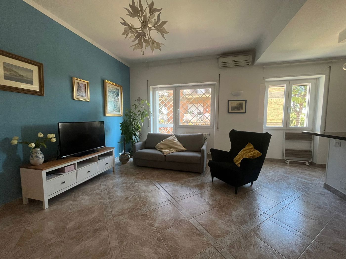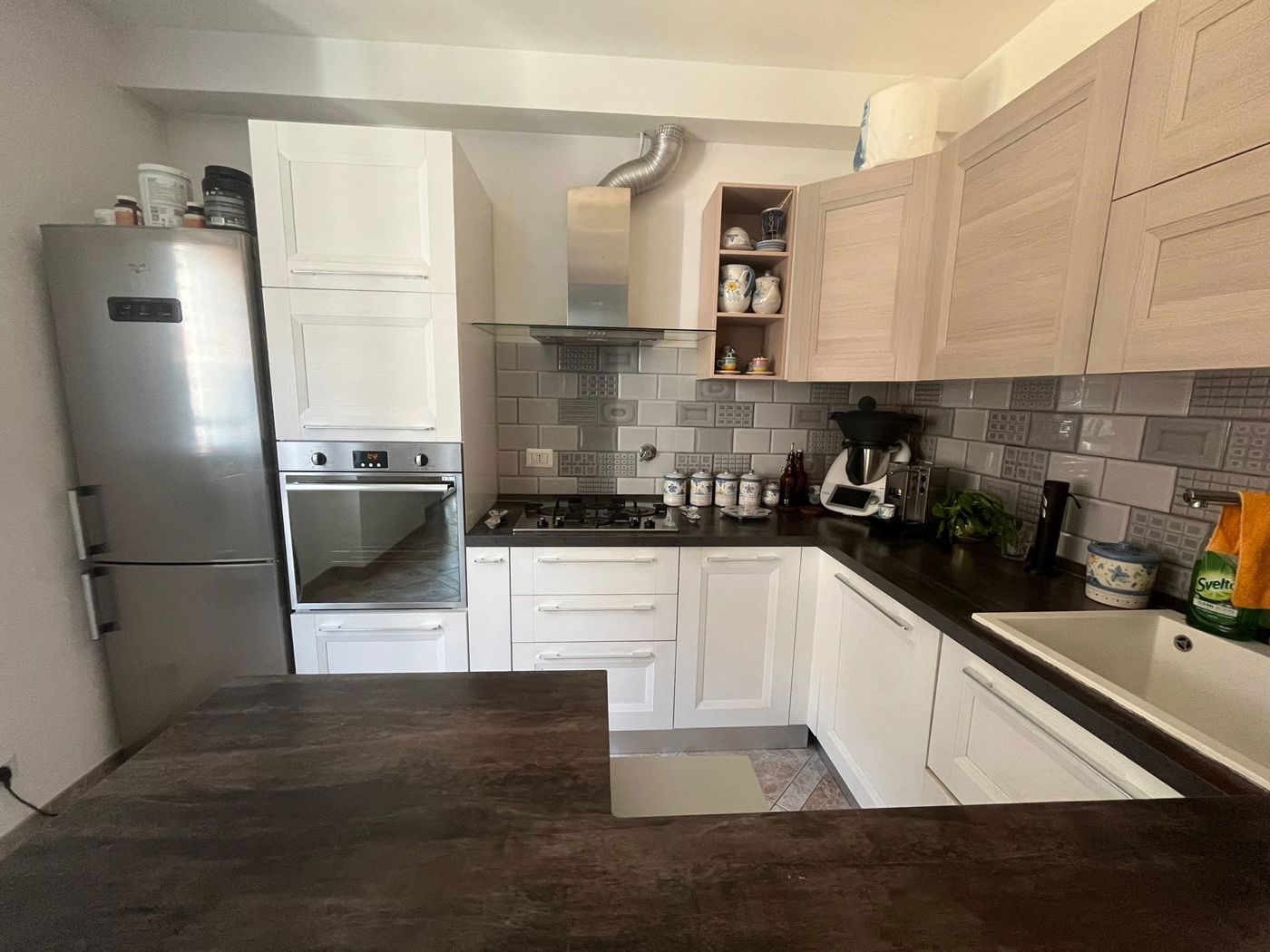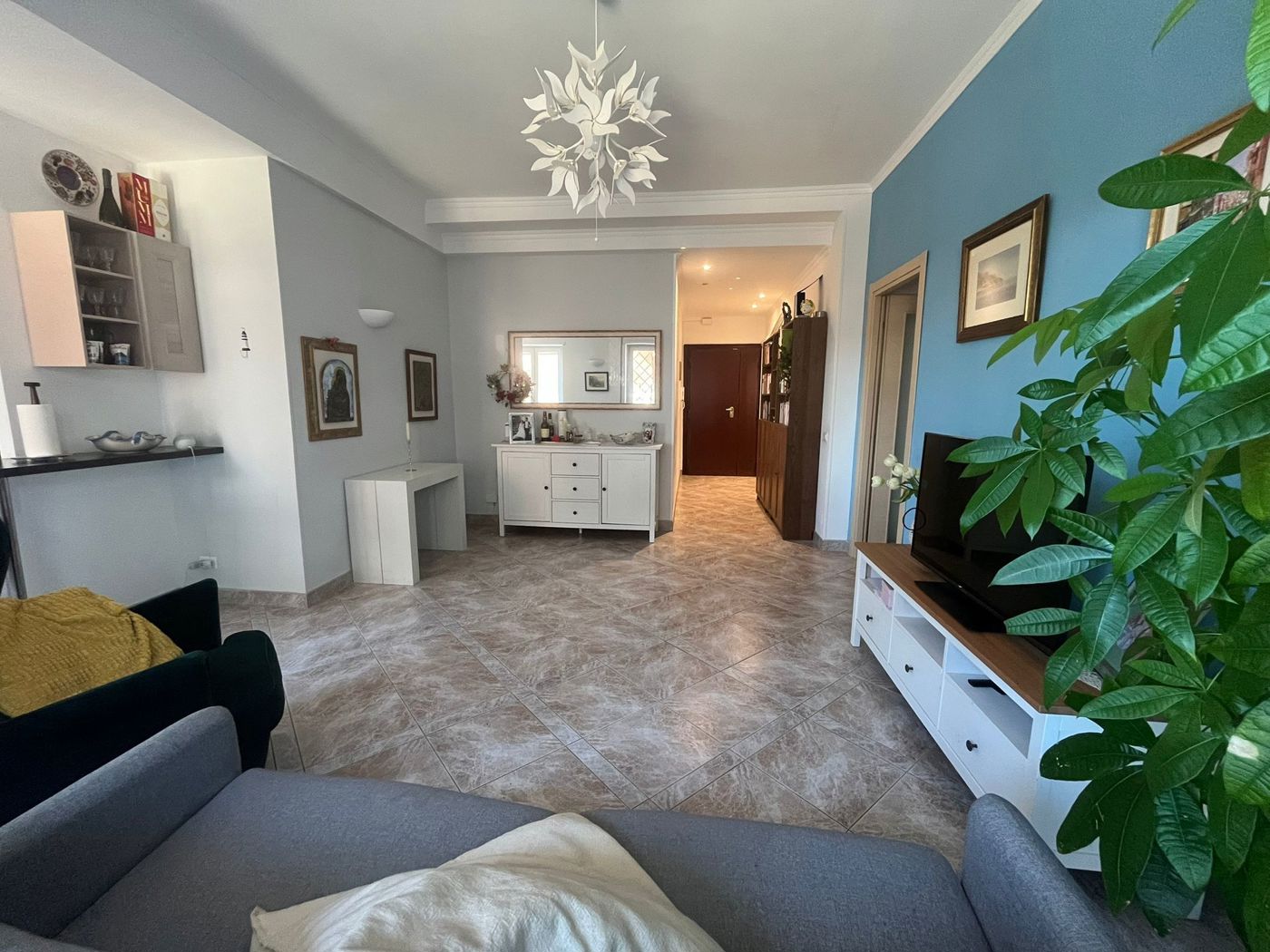 Limmobile si compone di ingresso, salone, cucina a vista completa di elettrodomestici (inclusa lavastoviglie), tre camere, due bagni e un balcone.