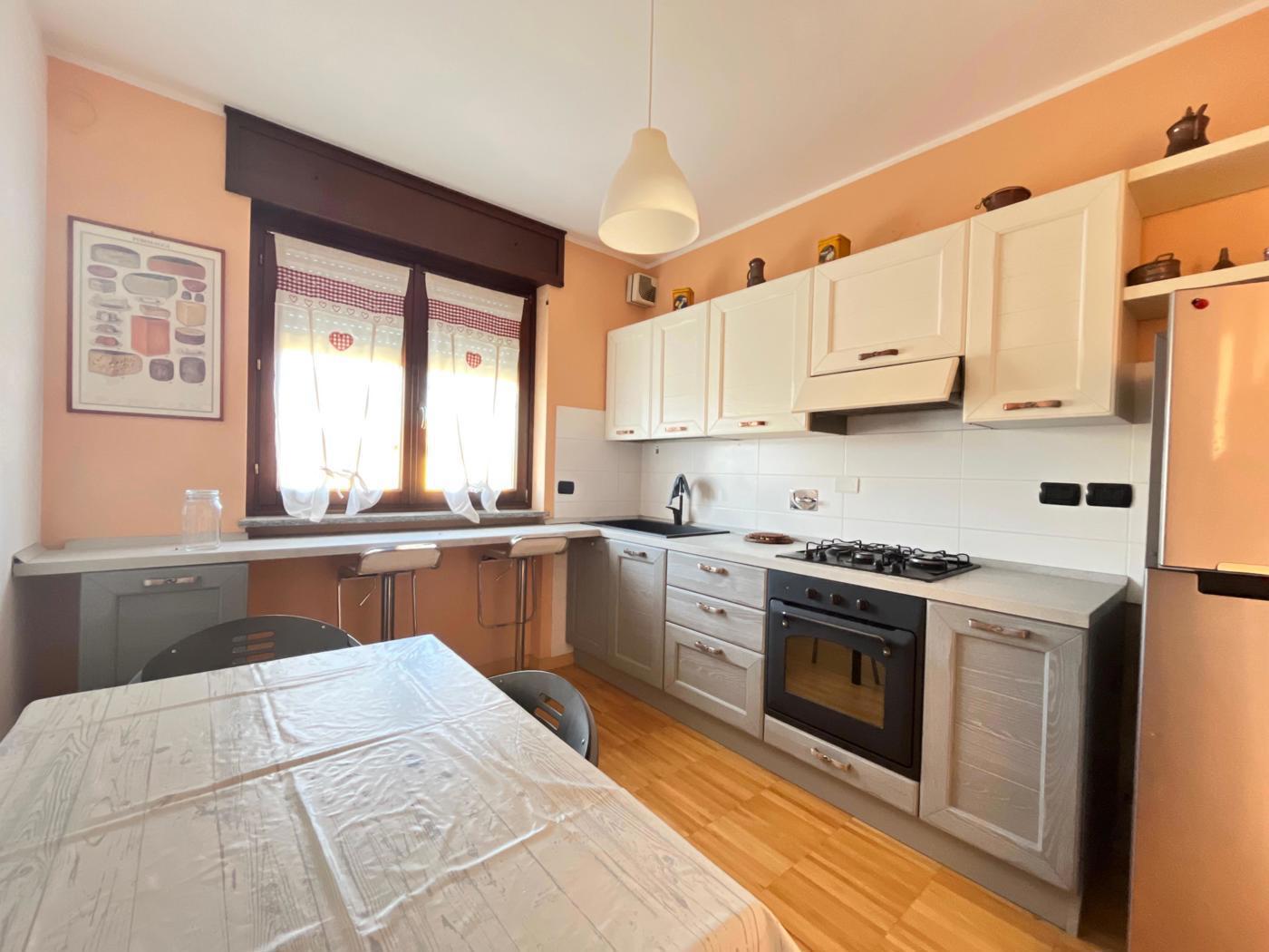 Completano la propriet la cantina e l'ampio garage doppio interrato, comodo per due auto e spazio extra per deposito o bici. L'appartamento gode di ottima esposizione, luminoso e arieggiato durante tutta la giornata.