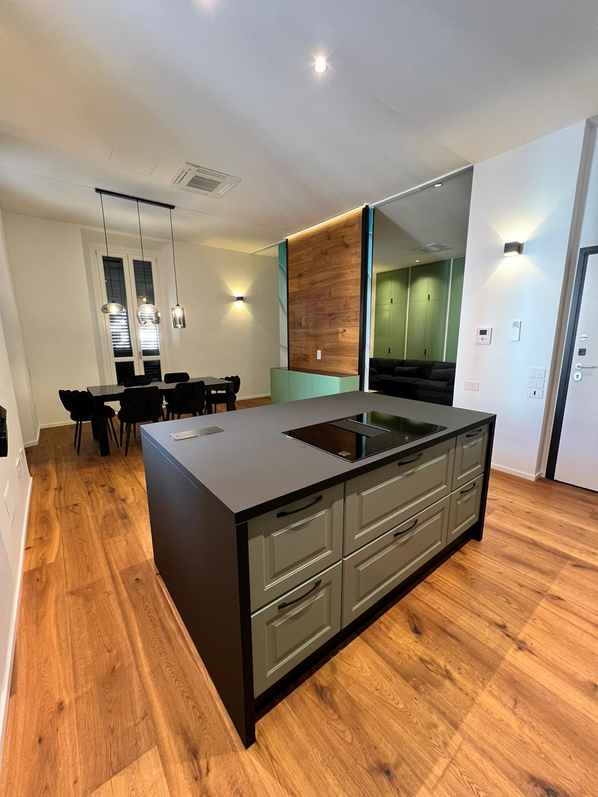 Limmobile è sito al primo piano con ascensore di piccola palazzina ed è così composto: luminoso soggiorno, moderna cucina con isola, sala da pranzo, 2 camere da letto di cui una con bagno privato e secondo bagno a servizio degli ospiti.