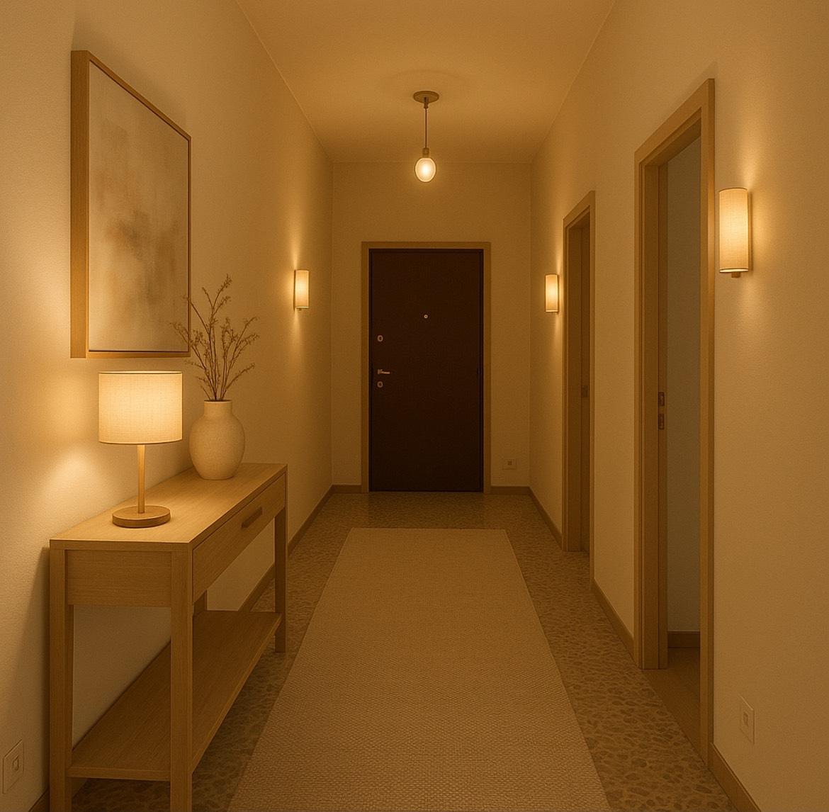 La tripla esposizione regala luce costante agli ambienti e valorizza i tre ampi balconi, perfetti per godersi la vista sul Castello di Angera e sul centro citt. Lingresso accoglie con discrezione, offrendo un pratico ripostiglio, e conduce alla grande zona giorno con cucina a vista, uno spazio aperto, arioso e pensato per essere vissuto con stile.