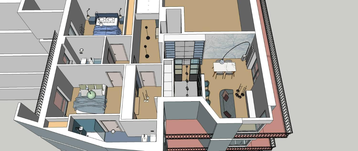Le tre camere da letto, ben distribuite, garantiscono privacy e funzionalit, mentre i due bagni, moderni, completano latmosfera contemporanea e curata dellimmobile.