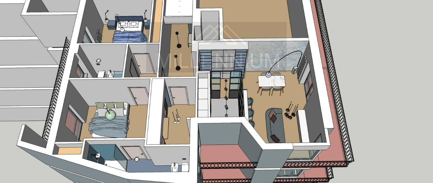 Le tre camere da letto, ben distribuite, garantiscono privacy e funzionalit, mentre i due bagni, moderni, completano latmosfera contemporanea e curata dellimmobile.