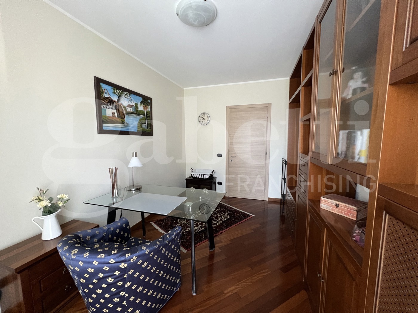 Lunit, completamente arredata, si compone internamente di zona giorno con ampio e luminoso soggiorno e cucina abitabile, un disimpegno conduce alla zona notte, composta da uno studio perfetto per il lavoro in modalit smartworking, due bagni, camera matrimoniale con cabina armadio e camera degli ospiti.