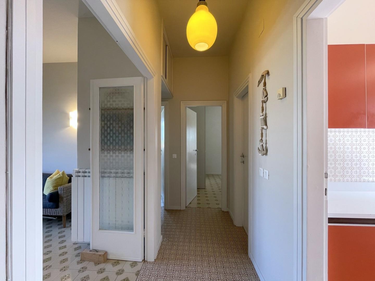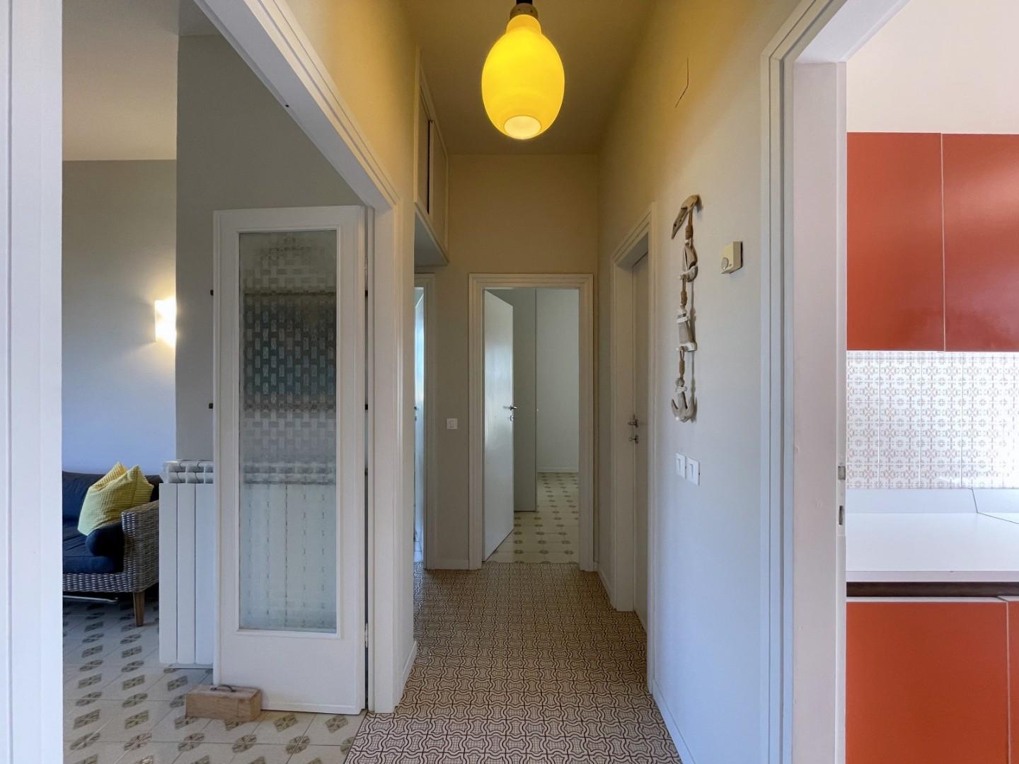 Il corridoio della zona notte, disimpegna il bagno con box doccia e le due camere matrimoniali.